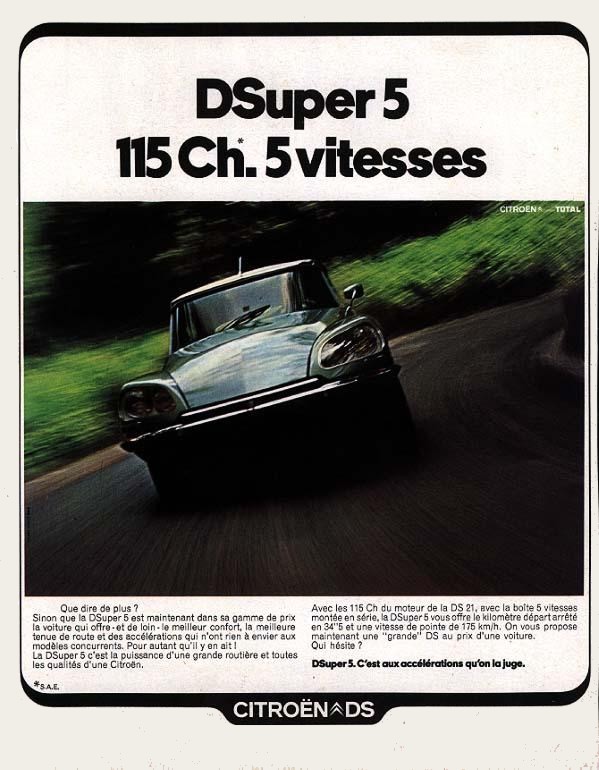 1969 rugsėjį pradėtas gaminti DS 21, pirmas Prancūzijos gamybos automobilis su elektronine kuro įpurškimo sistema: 2175cc variklis, 12CV, 188km/h, 10.38ltr/100km.