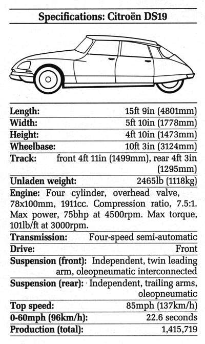 Turbūt retas automobilis buvo toks revoliucinis, kaip Citroën DS: su unikalia hidropneumatine pakaba, vairo stiprintuvu ir pusiau automatine greičių dėže, unikaliais diskiniais stabdžiais, patekęs į geriausių XX amžiaus automobilių trejetuką. DS išgelbėjo gyvybę generolui de Gaulle pasikėsinimo metu – net ir su peršautomis padangomis jis važiavo toliau. Jame buvo išbandytas ne vienas techninis sprendimas, kuriuos kitos automobilių firmos tesugebėjo įdiegti tik po keliasdešimt metų, kaip kad pasukami priekiniai žibintai.