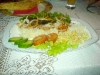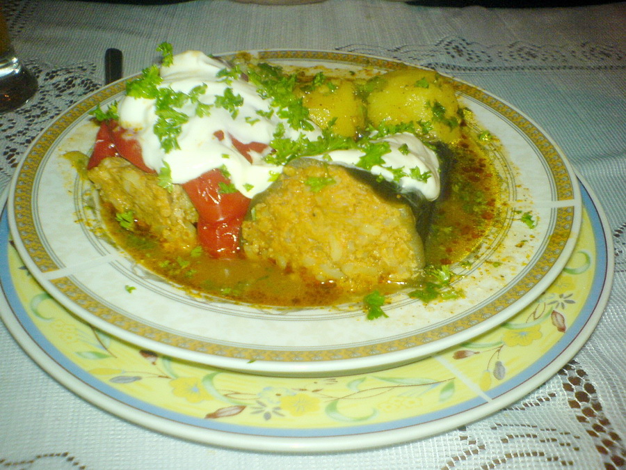 Na, pačioje kavinėje maistas labai patiko – ypač skani gruziniška duona, kepama specialioje krosnyje, sumūrytoje iš Gruzijos atvykusio krosnininko. Valgėme daržovių sriubą su mėsa (geras gabalas skaniai išvirtos avienos), aš pasiėmiau liulia-kebabą (ufff, didelė porcija), brangiausioji – mėsa įdarytas paprikas (kurių teįveikė tik vieną. o kitą teko suvalgyti man, tad į galą uždusau 😉 )
