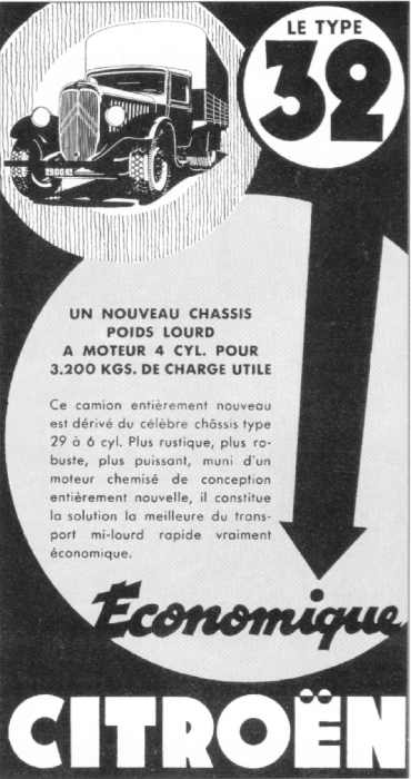 Citroënët puslapis apie Type 32 sunkvežimį ir jo modifikacijas