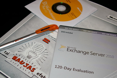 Gavau pabandymui Exchange Server 2010 ir Office 2010. Gal tikrai reiks pasižiūrėti, kas ten įdomesnio/geresnio įdėta, nors vėlgi – realus funkcionalumo panaudojimas man kaip susiformavo iki kokių 2000ųjų, taip ir liko toks pats. Tiesiog nesikeičia dokumentai, kuriuos ruošiu, o visokių animacinių ir garsinių barškučių niekad nemėgau.
