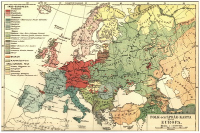 Saite su senoviniais piešiniais Vintage Printable radau 1907 metų Europos tautų/kalbų žemėlapį, išleistą kažkurių skandinavų. Labai įdomus ir mums ne visai malonus dalykas – visas Vilnijos kraštas gyvenamas ne lietuvių, bet ir ne lenkų, kaip kad tą jie amžinia pabrėžia, o baltarusių 😀 Nežinau, iš kur pradinė medžiaga ištraukta, bet tikrai įdomu.