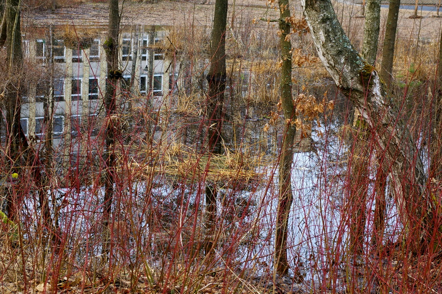 -> Rokas Arbušis – ežeriukas jau iškorijusiu ledu. O bala tai prieš pat langus tokioje daubelėje