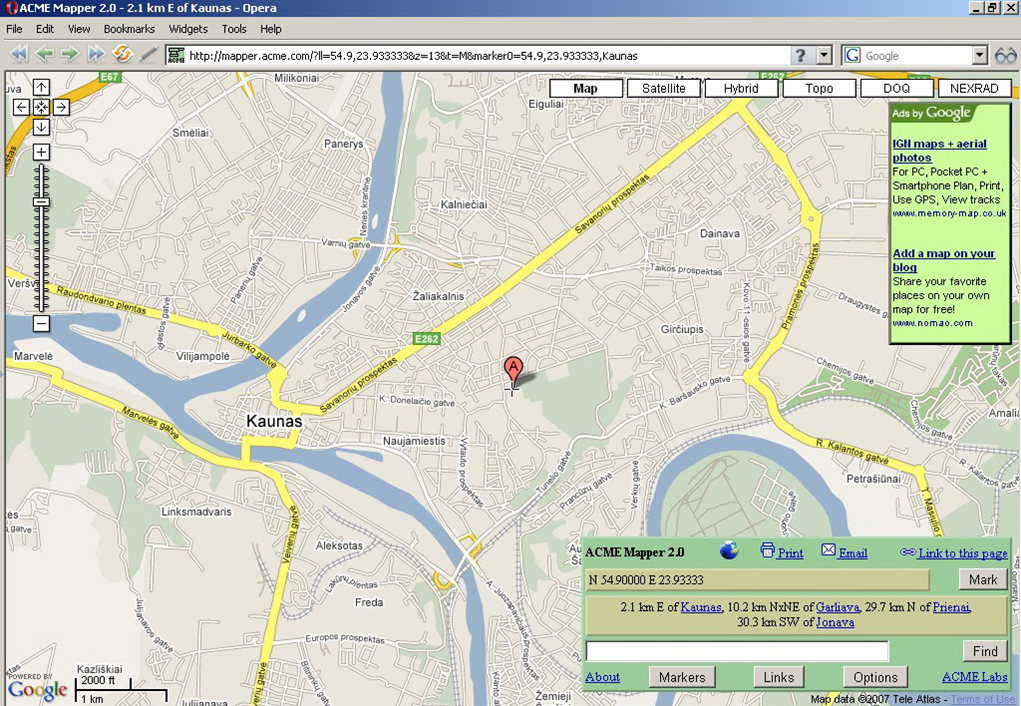 Dar vienas atlasas, panaudojęs Wikimapia duomenis – ACME Mapper. Kauno schemą lai verina patys kauniečiai.