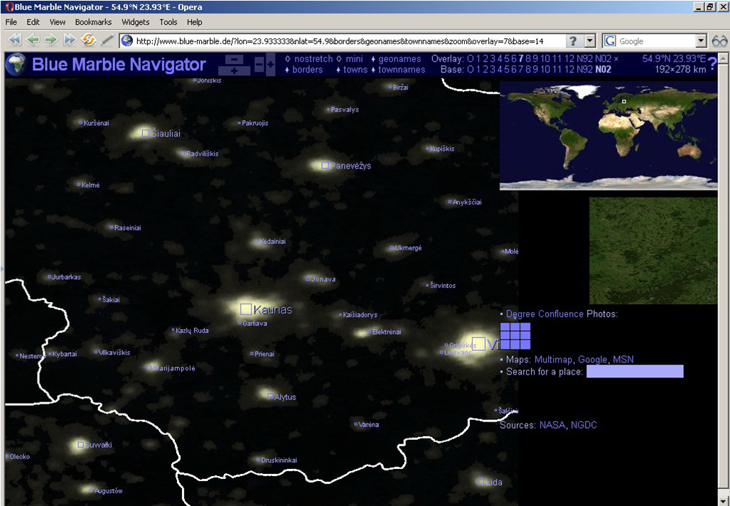 Atlasas, ko gero neturintis didelės praktinės vertės, tačiau tikrai įdomus pasižiūrėti, kaipgi mūsų žemė atrodo naktį – – Blue Marble. O Kaunas ir nemaža Lietuvos dalis – tik šviesos salelės tamsos jūroje.