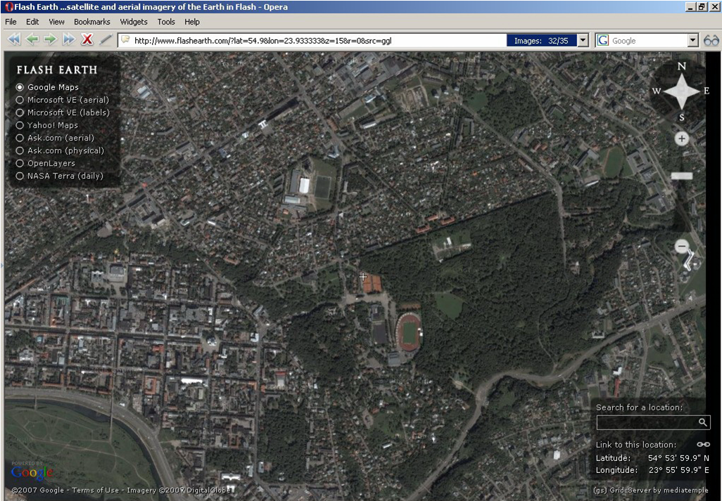 Atlasas, apjungiantis kelis kosminių ir aerofotografinių vaizdų šaltinius – Flash Earth vertas dėmesio. Bėda, kad toli gražu ne visi šaltiniai vienodai dengia visą Žemę (Lietuvai galime rasti tik kosminius vaizdus iš Google), bet vistiek verta pasižiūrėti į Kauną.