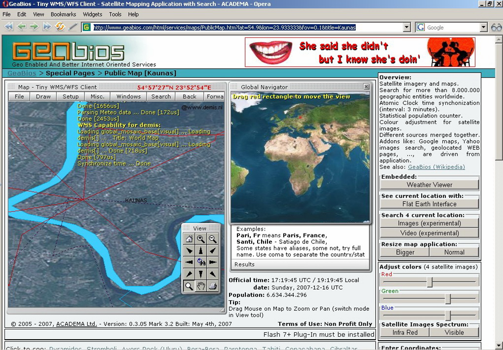 Grįžtant prie originalų atlasų, paminėsiu GeaBios, derinantį kosminę nuotrauką su kita informacija. Kauno vaizdas čia nelabai koks, bet… „dovanotam arkliui į dantis nežiūrima“.