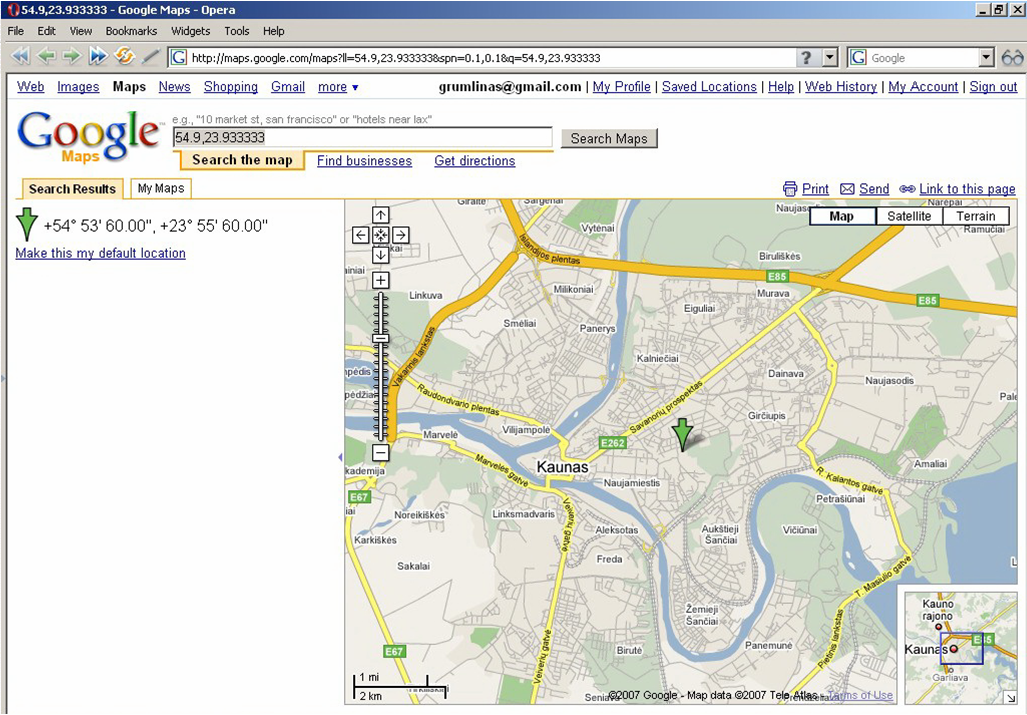 Kitas ypatingai populiarus atlasas – Google Maps, kurį paruošė, be abejo, Google. nagi, durkime pirštu į Kauną. Šiame atlase galiem grožėtis ir kosminiais Žemės vaizdais, analogiškais Google earth.