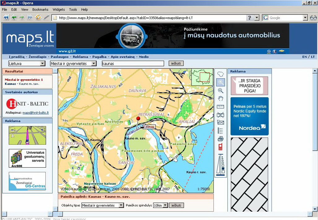 Pradėsime nuo turbūt aktualiausio lietuviams ir populiariausio atlaso – Hnit-Baltic sudaryto Maps.lt, kuriame rasime tikrai pilnavertį