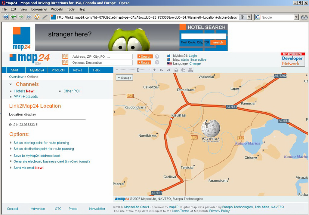 Automėgejams skirtas dar vienas atlasas su kelių informacija – Map24, pagrįstas Wikimapia duomenimis. Gal kiek primityvokas, tačiau Kauną surasime ir čia.