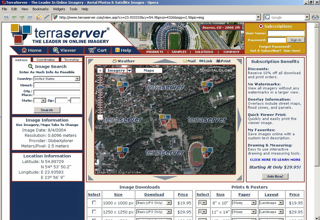 Skirtingai nuo kitų atlasų, Terra Server pagrindas – kosminis vaizdas su uždėta informacija. Kaunas, be abejo čia irgi yra.