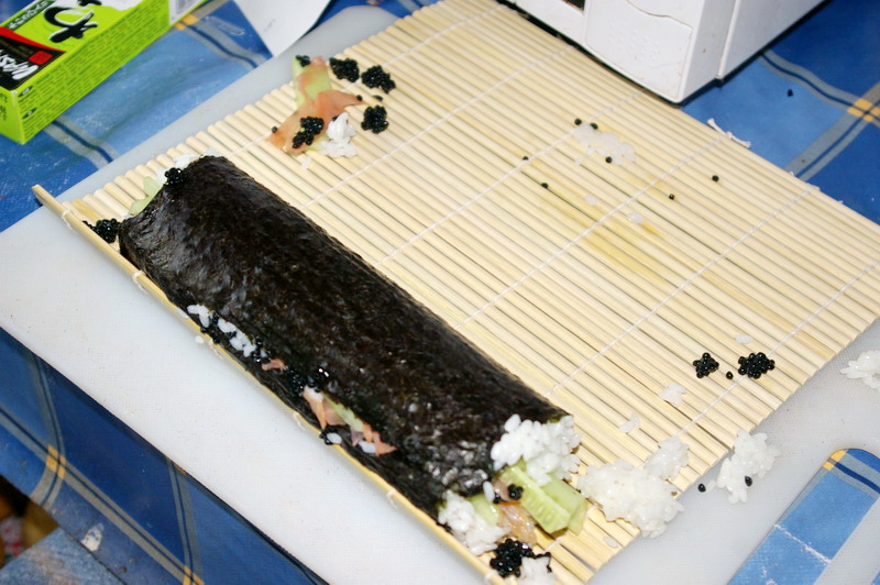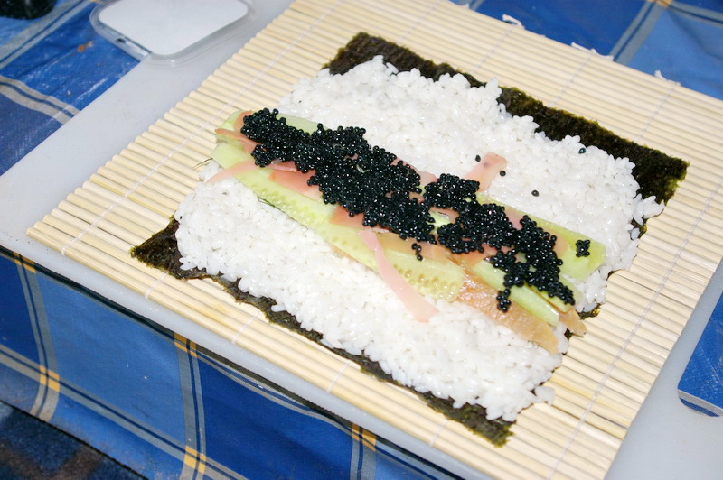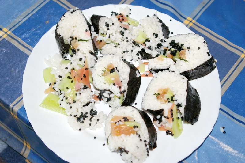 4) su įdaru gavosi, kaip su lietuviška pica – tipo „kuo daugiau – tuo geriau“. Norėjosi įvairumo, tai pridėjau ir lašišos, ir agurkų, ir ikrų, ir imbiero;