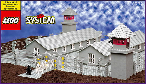 Kai kada galima išgirsti, jog savo laiku LEGO išleido kelis savo konstruktorių rinkinius, iš kurių galima susikonstruoti koncentracijos stovyklą. Internete galima rasti šių konstruktorių nuotraukų. Deja, deja, tai vienas iš mitų, kurie savo laiku padarė nemažą žalą LEGO įvaizdžiui. O viskas prasidėjo nuo lenkų menininko Zbygniew Libera, kuris mėgsta šokiruoti žiūrovą provokacijomis. Tad Libera sumąstė suderinti LEGO kaladėles, simbolizuojančias gerą vaikystę, su holokosto, vieno iš tamsiausių mūsų civilizacijos etapų, atminimu. Tai turėjo būti tikra provokacija. 1996 metais jis paprašė LEGO paramos, kuriant projektą. Ką jis rašė iš tikrųjų – nežinoma – gal kalėjimą, gal ligoninę – niekas dorai nežino. Autorius tik mini, jog idėja „vystėsi“.