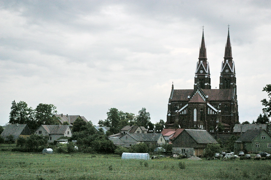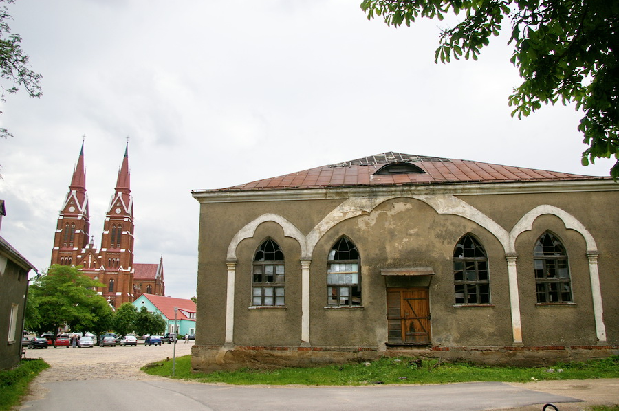 Pati Švėkšna nuo pernai mažai pakitusi (tik senoji sinagoga kasnet vis labiau nyksta), o didelę simpatiją man kaskart kelia senasis akmenininis aikštės grindinys. Šįkart kažkaip paėjau tolyn gatvele ir netyčia gavosi dviejų šventovių palyginimas… Nors, kai pagalvoji – abu religijos nyksta…