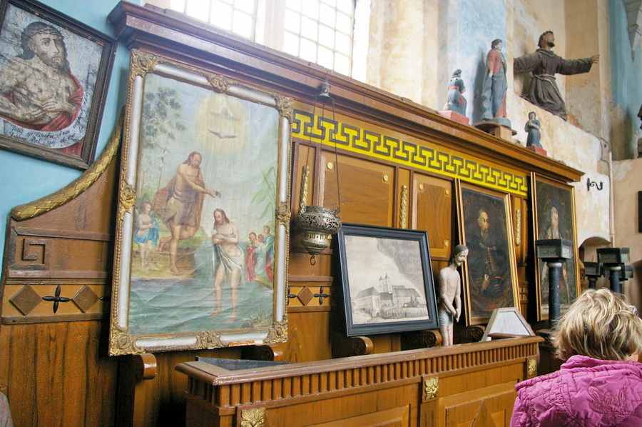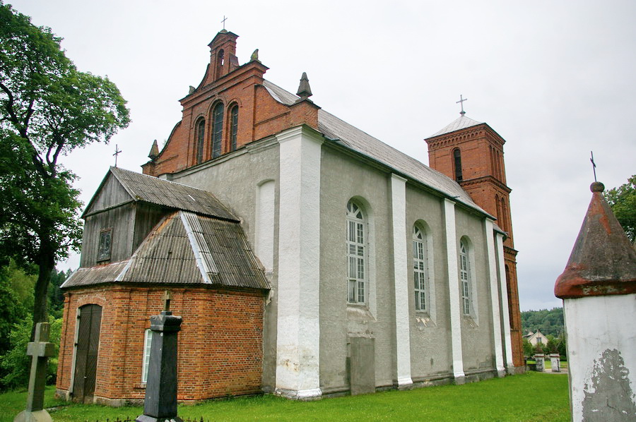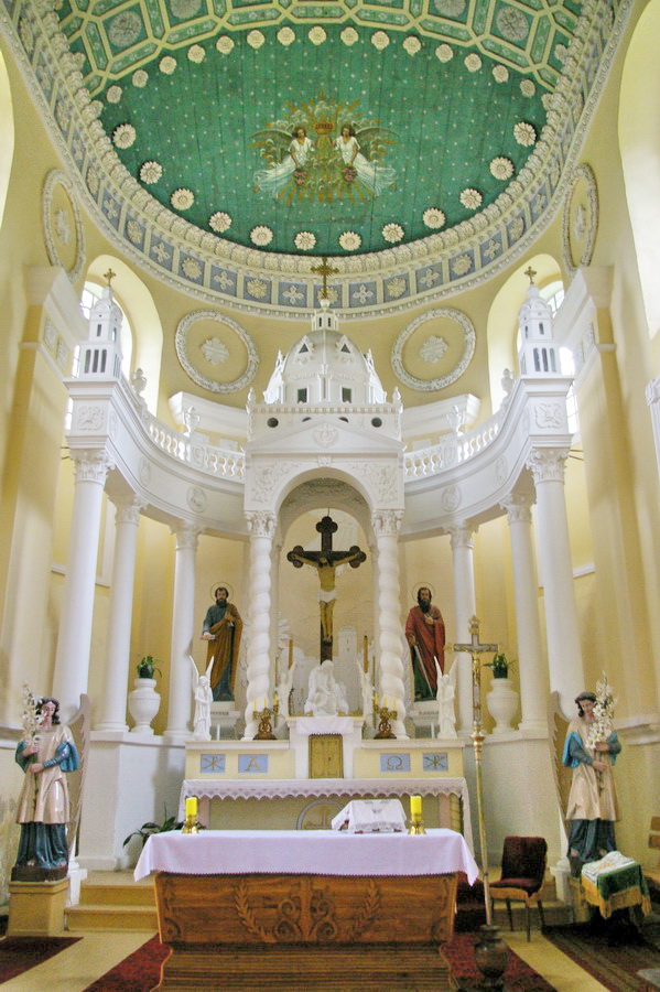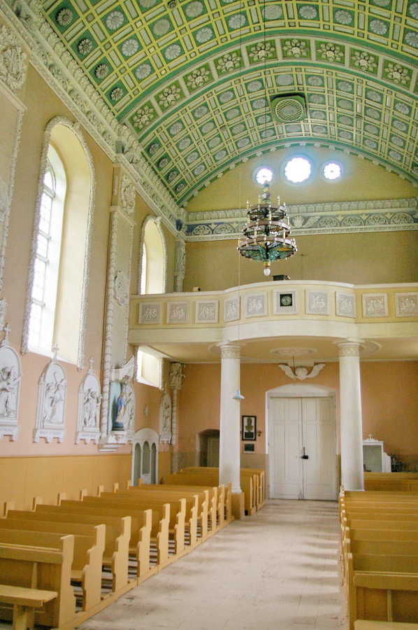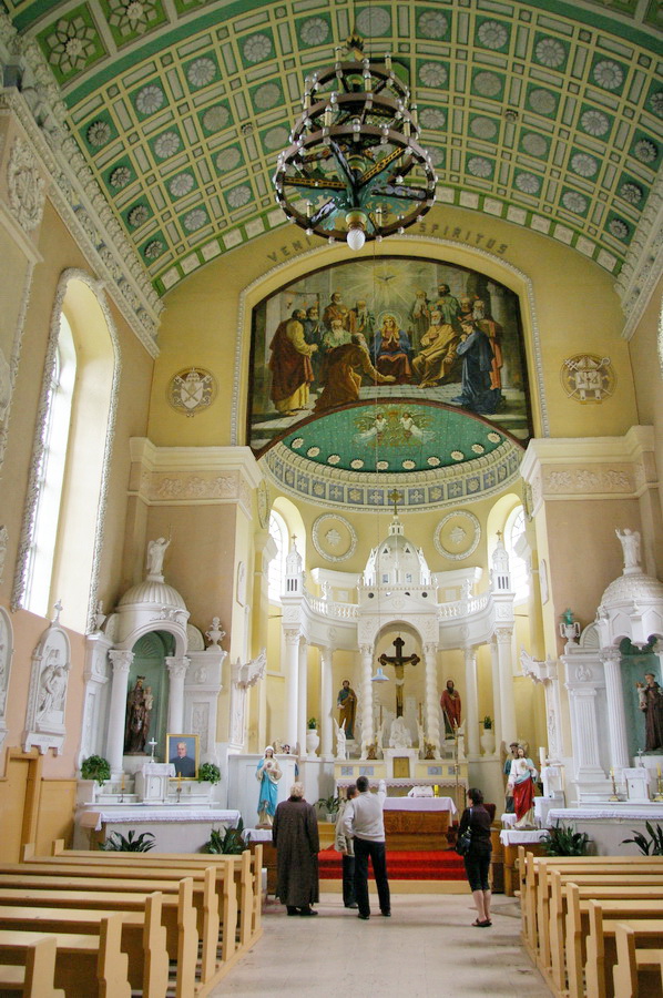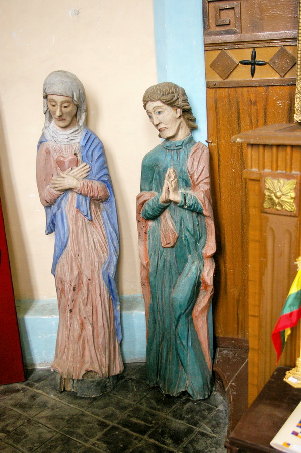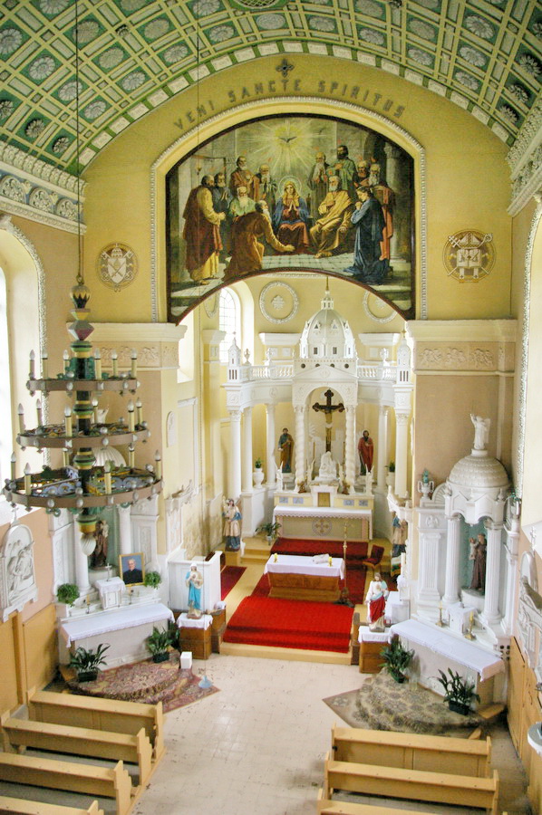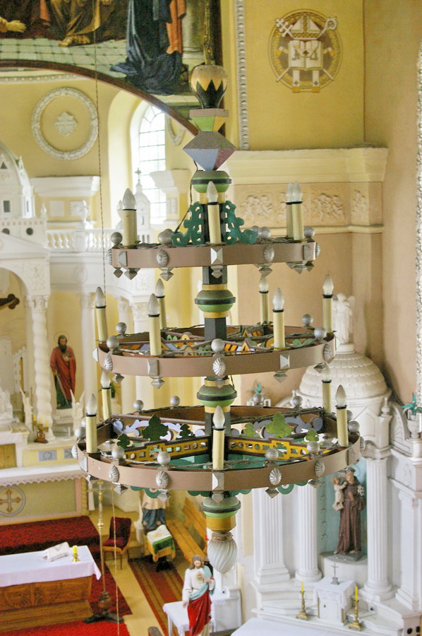 Po pietų nuvažiavome į Lyduvėnų bažnyčią. Iš išorės tokia „kaimų-kaimas“ – o viduje – fantastika! Vien ko vertos medinių drožinių lubos ir medinis sietynas. Kadangi važiavome su savo šiluviškiu kolega, tai bažnyčios zakristijonas leido įlįstį į varpinės bokšto apačią už altoriaus, o taip pat užsiropšti į chorus, kur iš arčiau apžiūrėjau tas fantastiškas drožtines medines lubas.