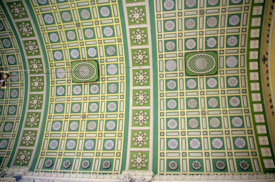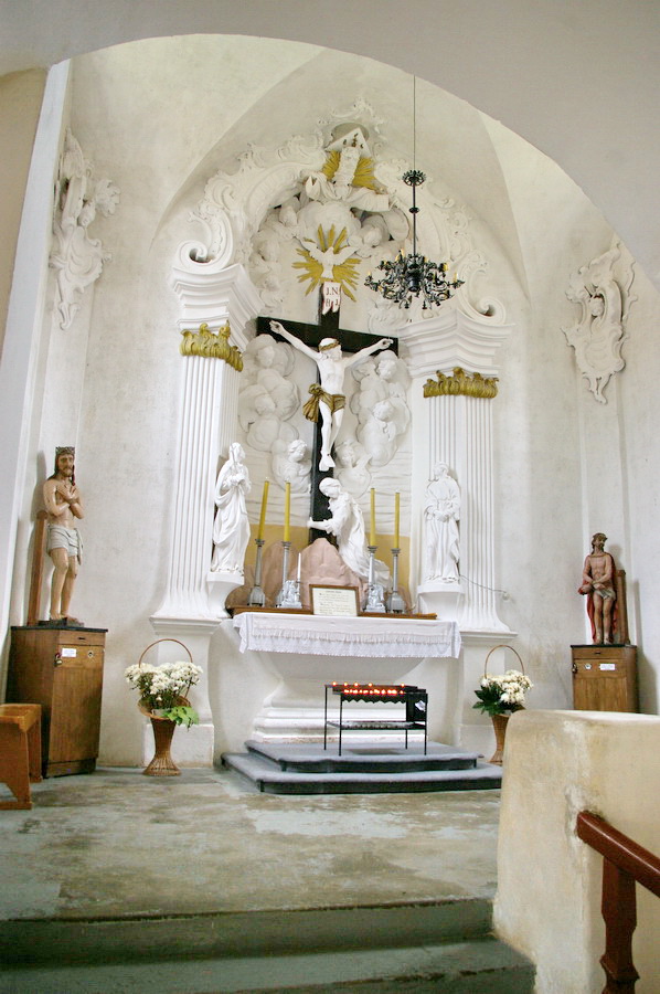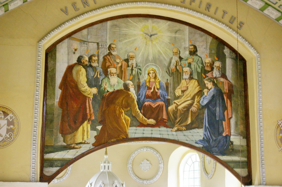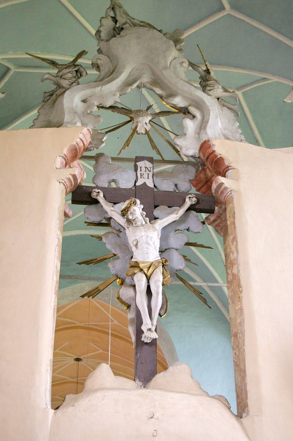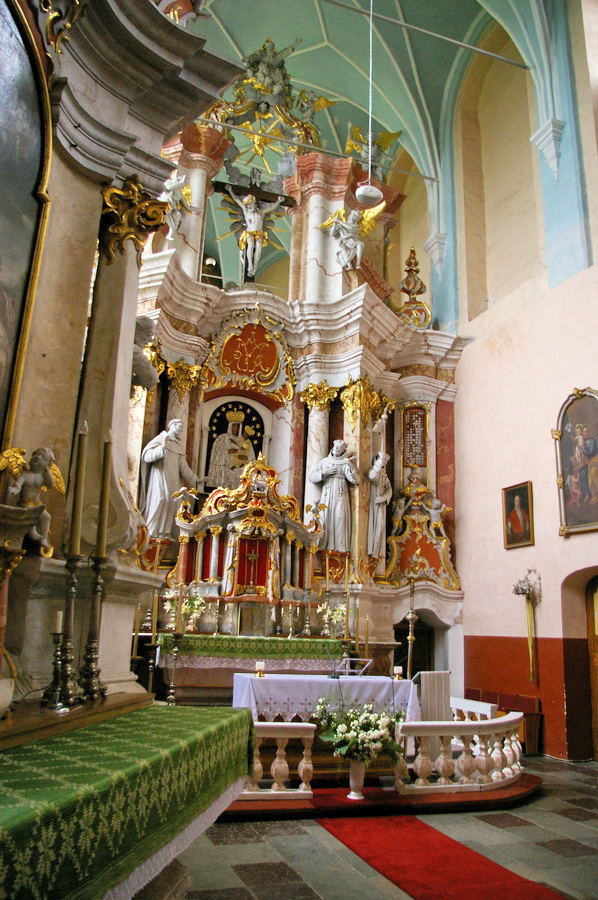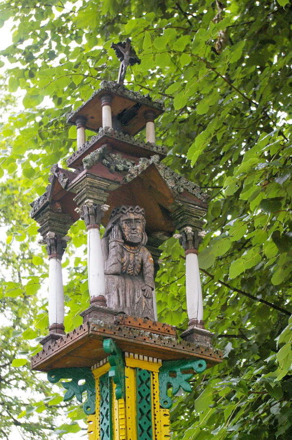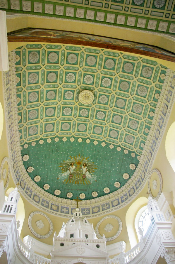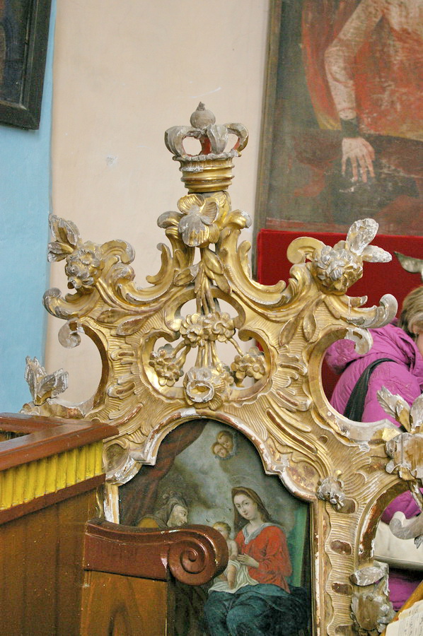 Po pietų nuvažiavome į Lyduvėnų bažnyčią. Iš išorės tokia „kaimų-kaimas“ – o viduje – fantastika! Vien ko vertos medinių drožinių lubos ir medinis sietynas. Kadangi važiavome su savo šiluviškiu kolega, tai bažnyčios zakristijonas leido įlįstį į varpinės bokšto apačią už altoriaus, o taip pat užsiropšti į chorus, kur iš arčiau apžiūrėjau tas fantastiškas drožtines medines lubas.
