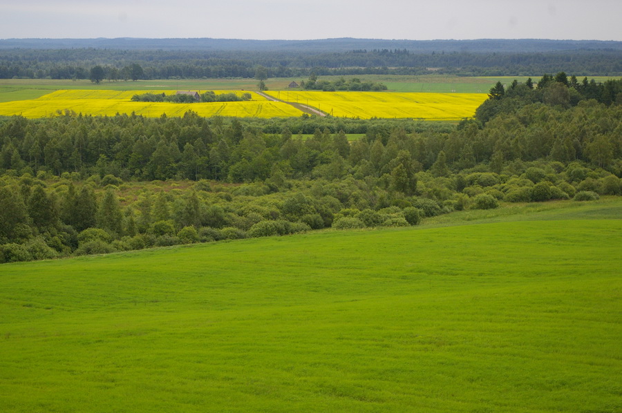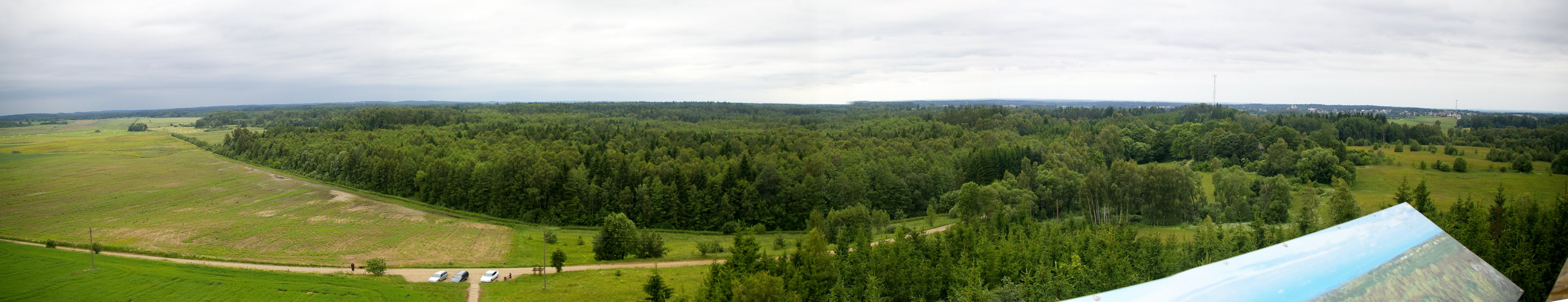 Paskui sumanėme aplankyti ir Pašakarnio dvarą. Pakeliui užmatėme ant kalvelės stovintį apžvalgos bokštą, tai užsiropštėme. Vaizdai iš ten tikrai gražūs, padariau kelias panoramas.