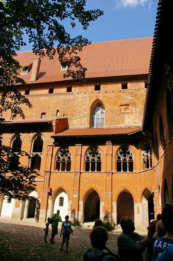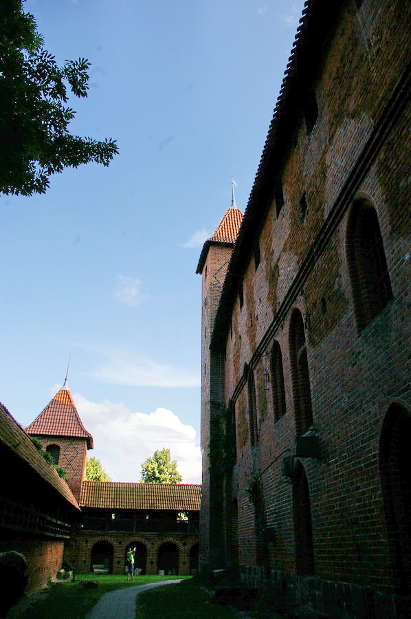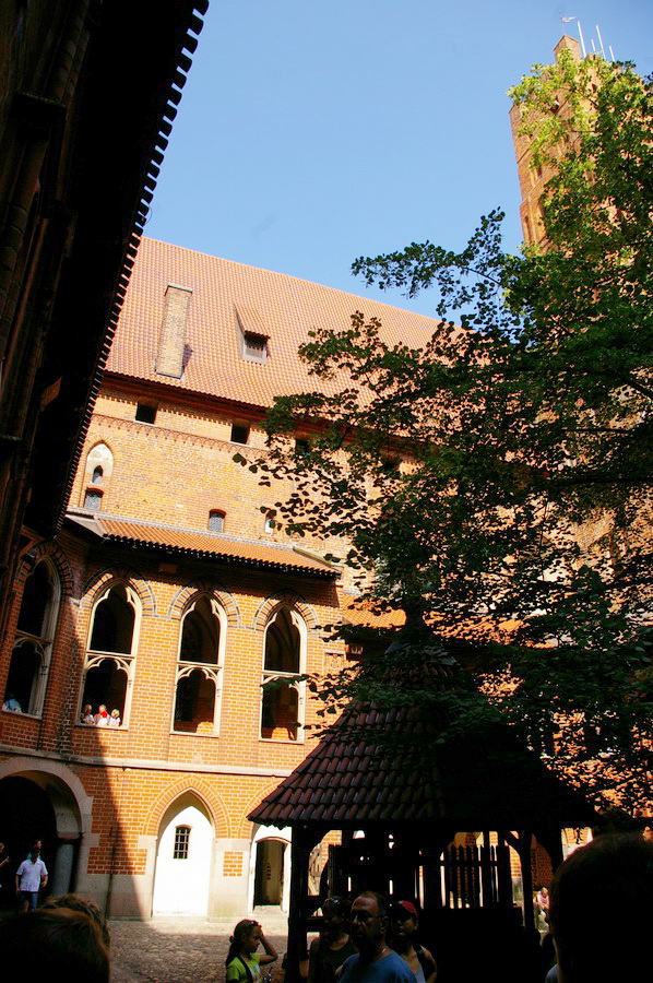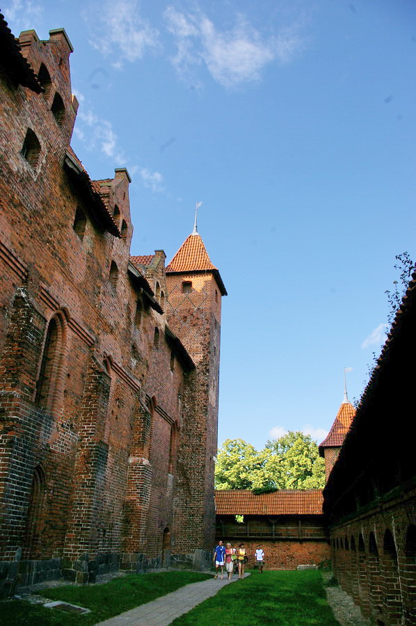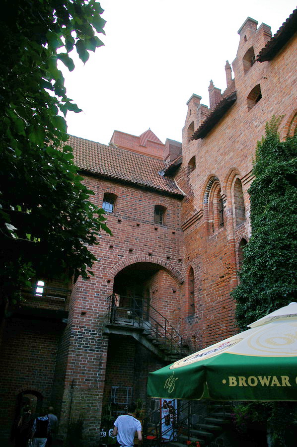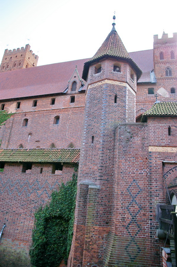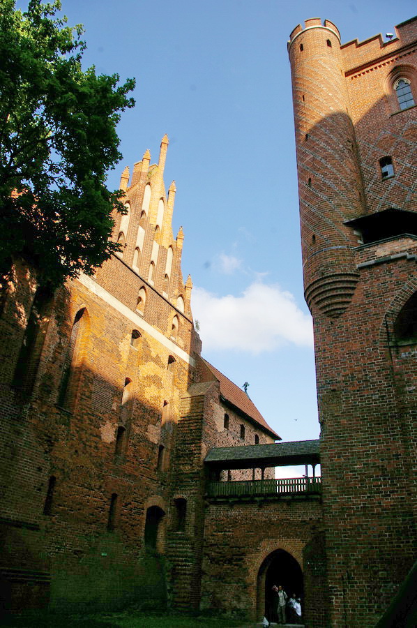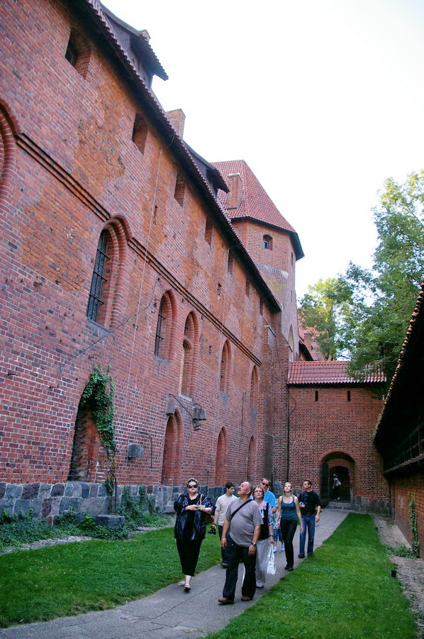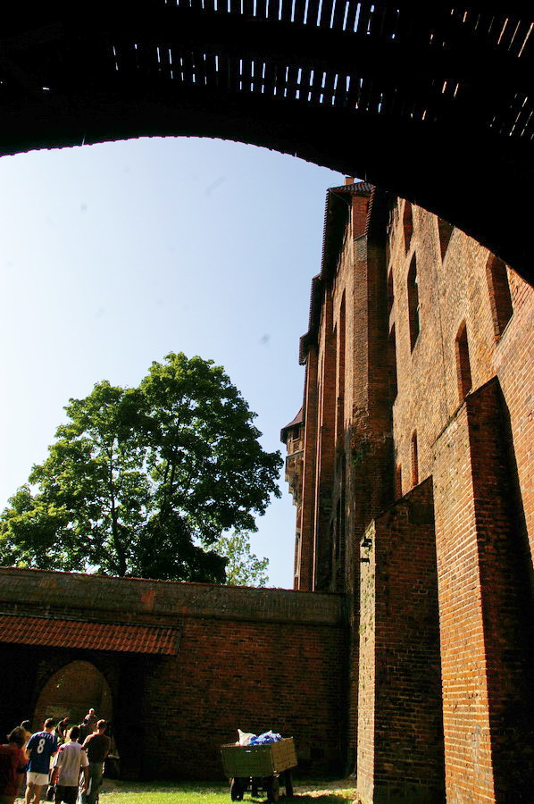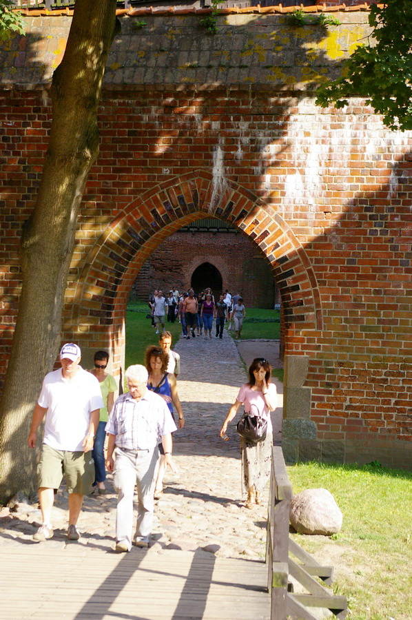 Belaukiant eksursijos tęsinio, pafotkinau Aukštutinę pilį. Tai geriausiai išsilaikiusi ir labiausiai retauruota Malborko pilies dalis, tačiau ten irgi dar yra ką daryti. Susirinkus eksursijai, mediniu tiltu nuėjome į vidų. Prieš vartus mums papasakojo, kad čia iš esmės buvo vyrų vienuolynas, į kurį moterims įeiti buvo uždrausta. Brolių-vienuolių nebūdavo daug (maks. 100-120), tačiau jie surinkdavo didžiules kariuomenes iš visos Europos žygiams prieš pagonis. Vartų bokšto viršuje yra anga, pro kurią pildavo karštą smalą arba vandenį, nors to niekad neprisireikė – pilis niekad nebuvo užimta.
