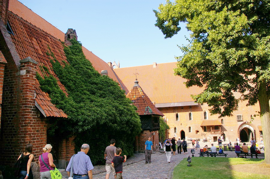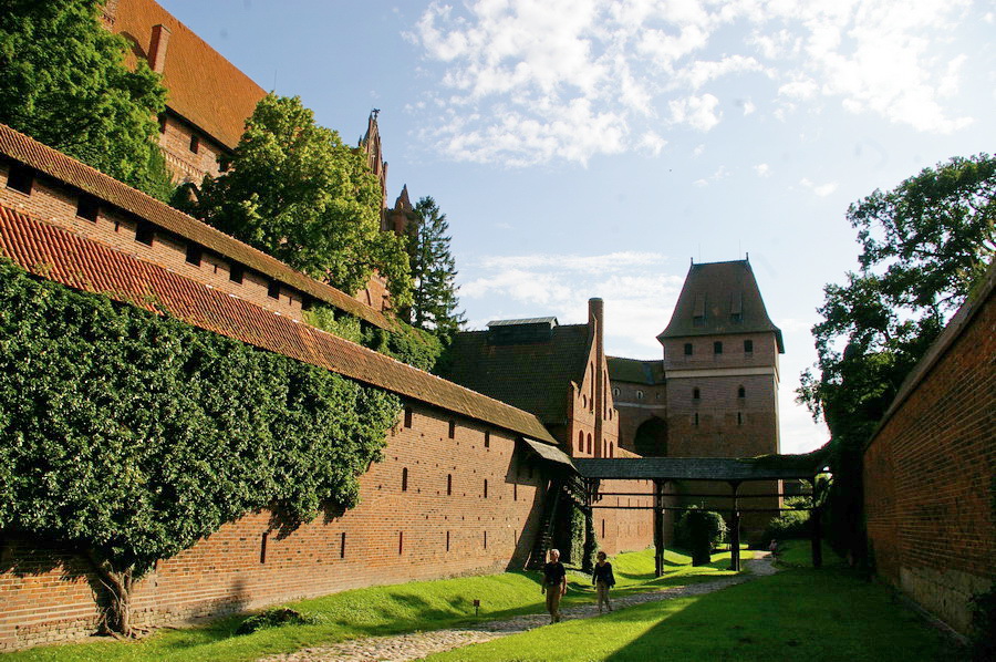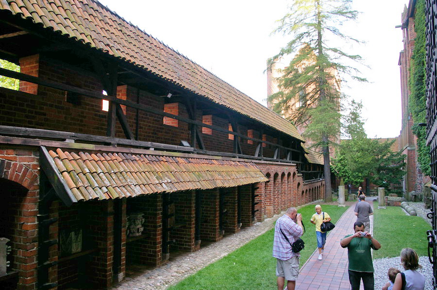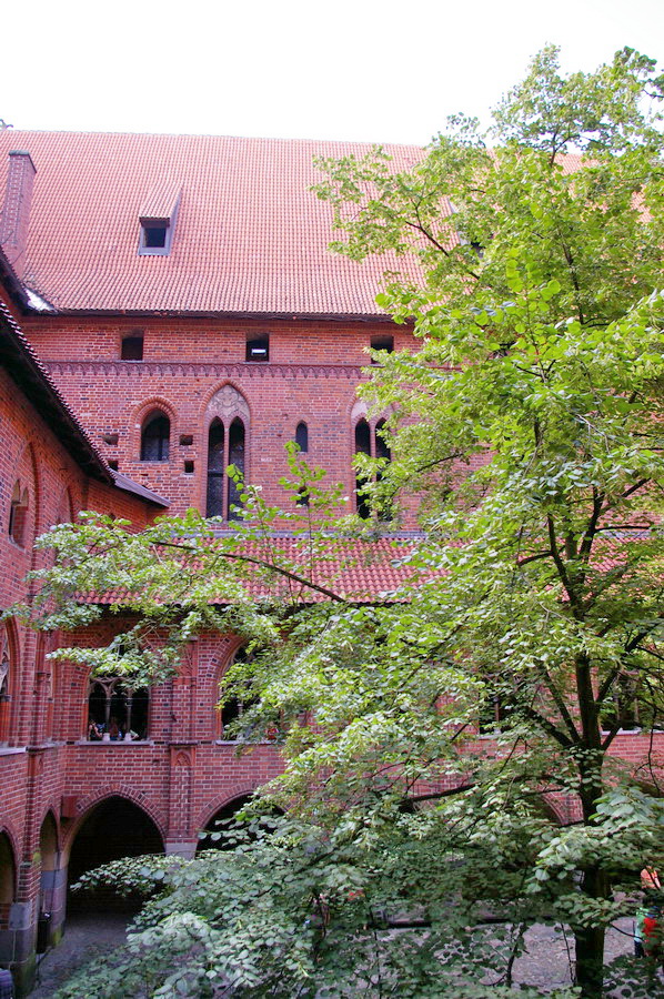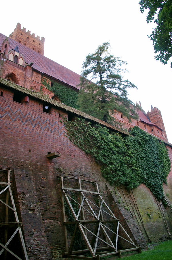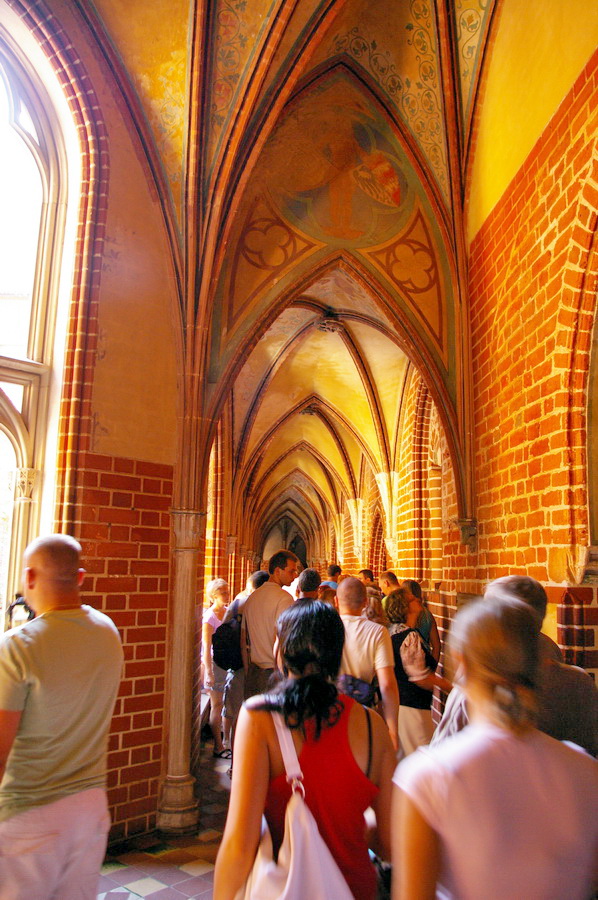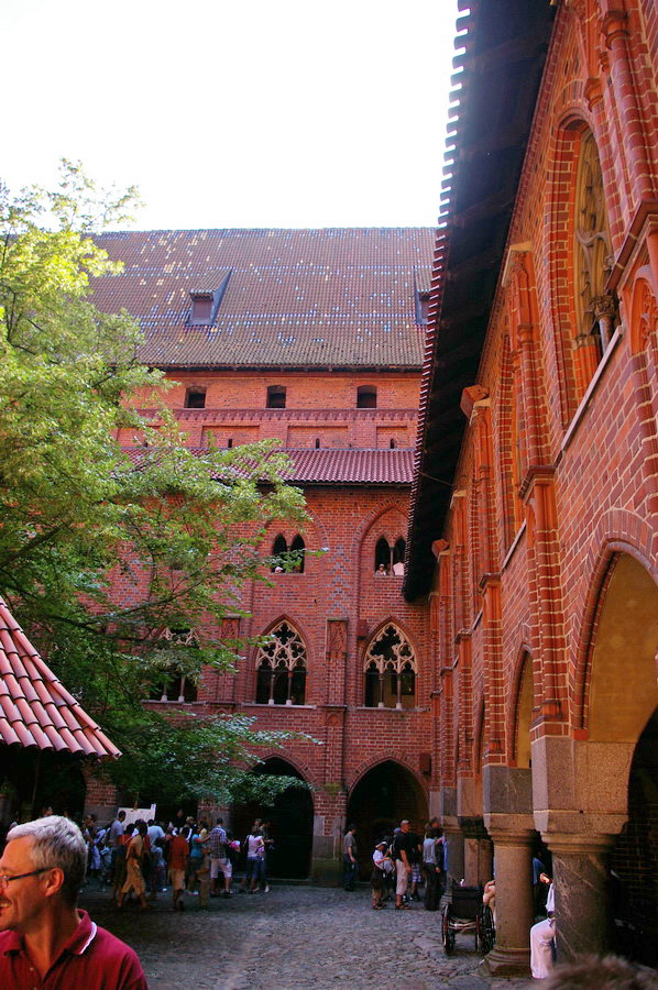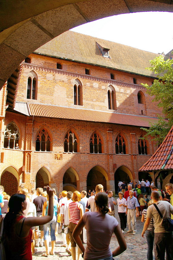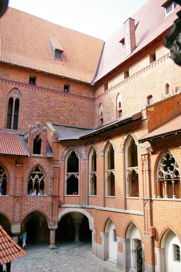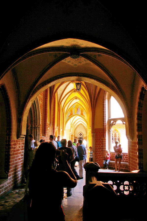 Belaukiant eksursijos tęsinio, pafotkinau Aukštutinę pilį. Tai geriausiai išsilaikiusi ir labiausiai retauruota Malborko pilies dalis, tačiau ten irgi dar yra ką daryti. Susirinkus eksursijai, mediniu tiltu nuėjome į vidų. Prieš vartus mums papasakojo, kad čia iš esmės buvo vyrų vienuolynas, į kurį moterims įeiti buvo uždrausta. Brolių-vienuolių nebūdavo daug (maks. 100-120), tačiau jie surinkdavo didžiules kariuomenes iš visos Europos žygiams prieš pagonis. Vartų bokšto viršuje yra anga, pro kurią pildavo karštą smalą arba vandenį, nors to niekad neprisireikė – pilis niekad nebuvo užimta.