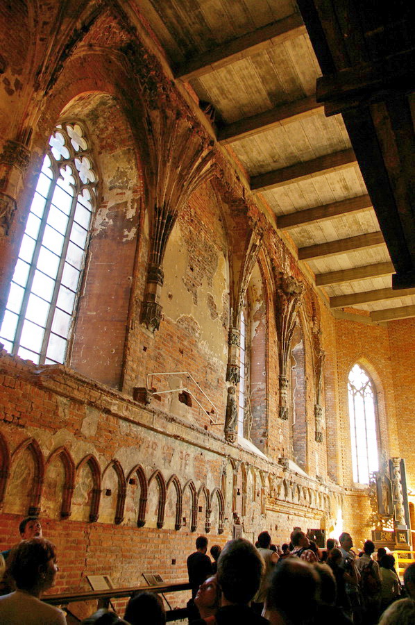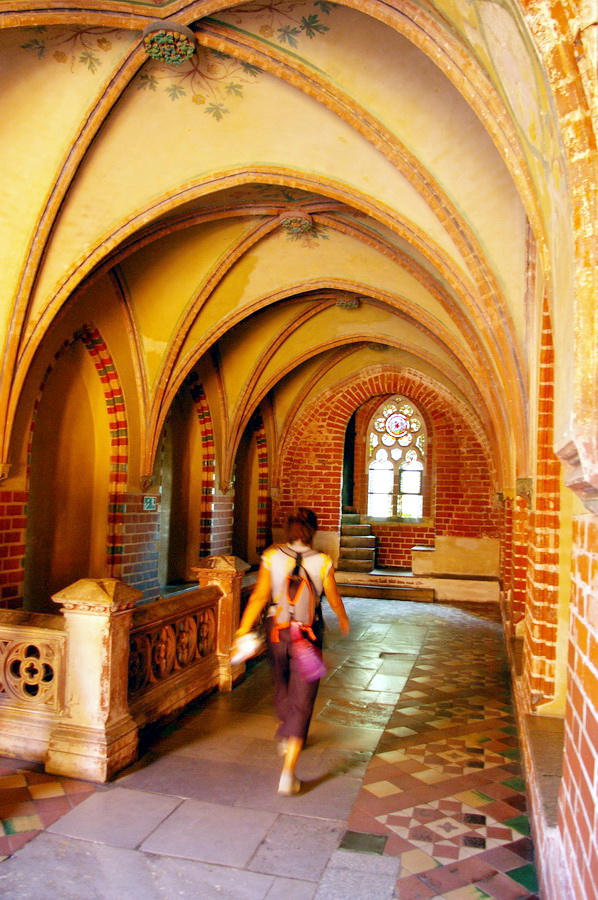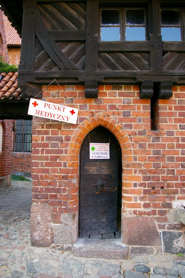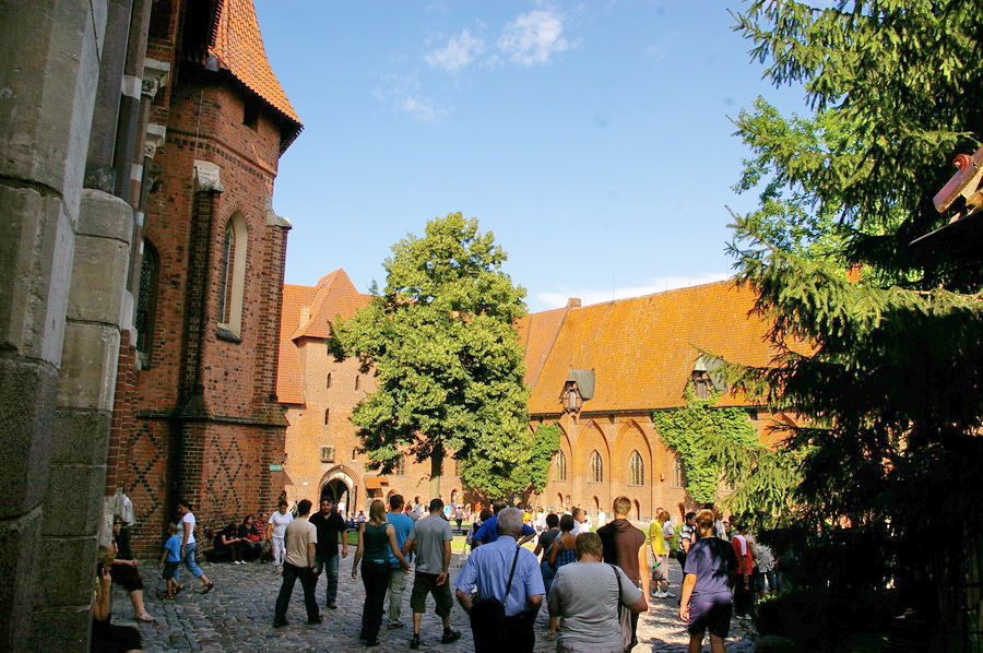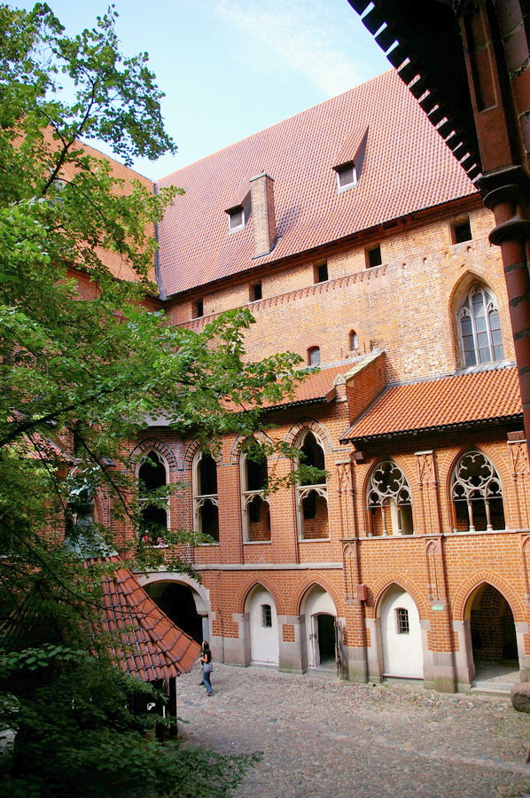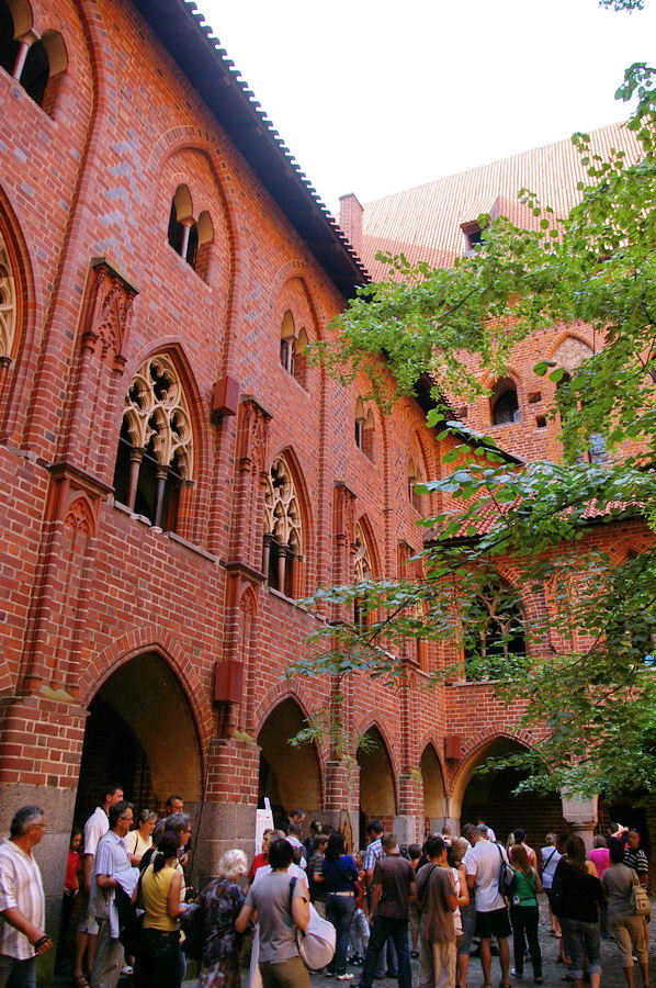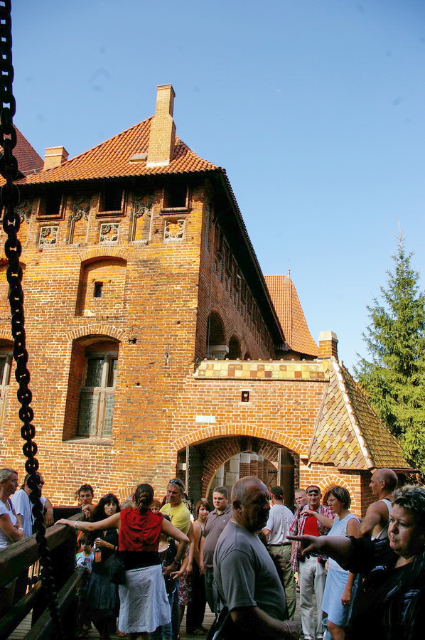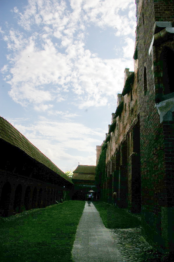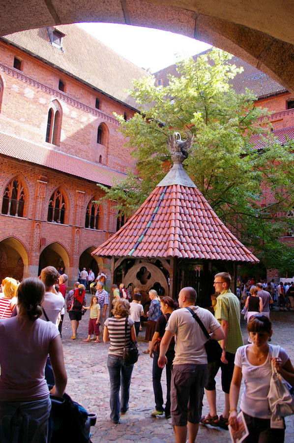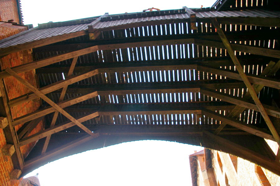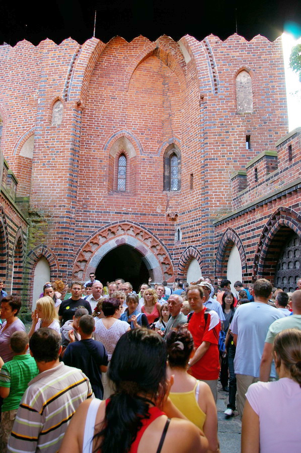 Belaukiant eksursijos tęsinio, pafotkinau Aukštutinę pilį. Tai geriausiai išsilaikiusi ir labiausiai retauruota Malborko pilies dalis, tačiau ten irgi dar yra ką daryti. Susirinkus eksursijai, mediniu tiltu nuėjome į vidų. Prieš vartus mums papasakojo, kad čia iš esmės buvo vyrų vienuolynas, į kurį moterims įeiti buvo uždrausta. Brolių-vienuolių nebūdavo daug (maks. 100-120), tačiau jie surinkdavo didžiules kariuomenes iš visos Europos žygiams prieš pagonis. Vartų bokšto viršuje yra anga, pro kurią pildavo karštą smalą arba vandenį, nors to niekad neprisireikė – pilis niekad nebuvo užimta.