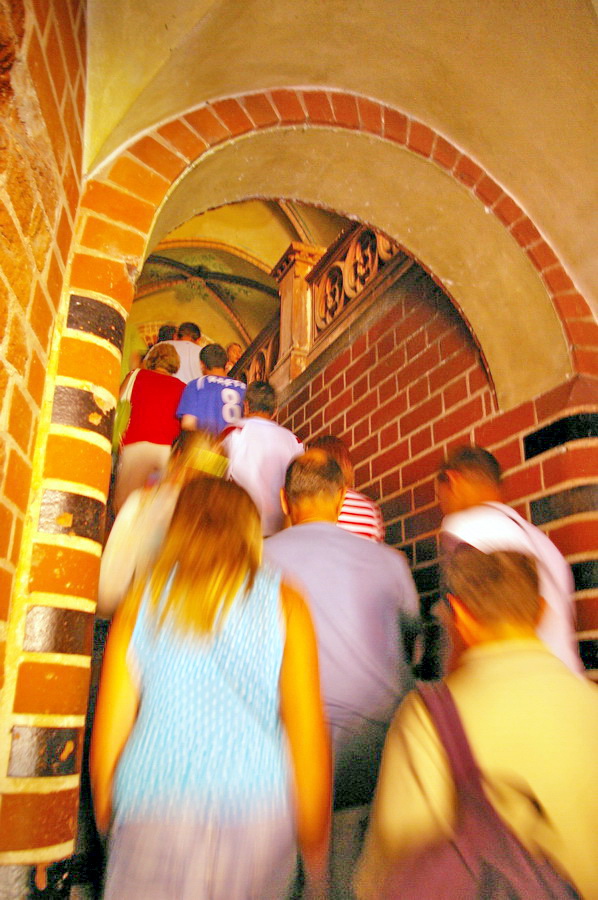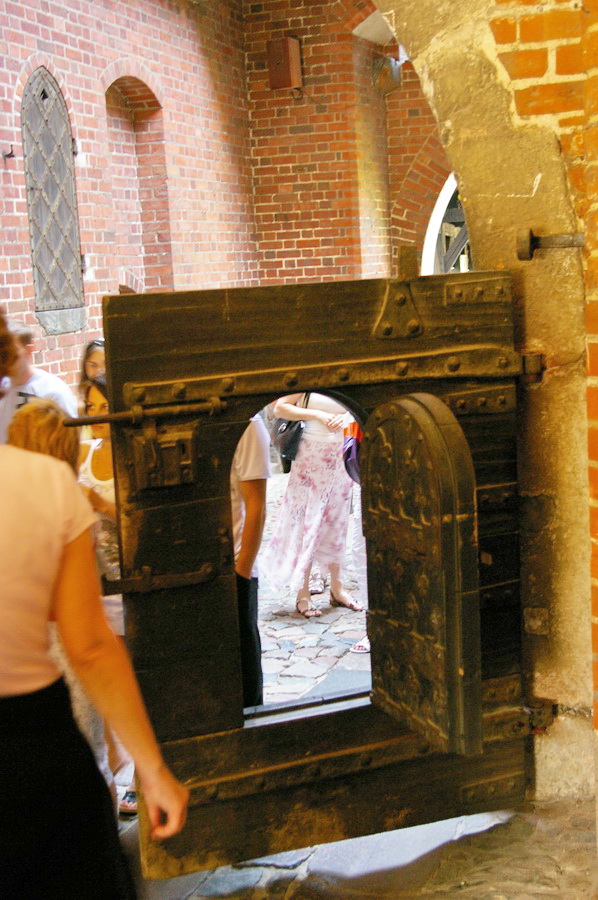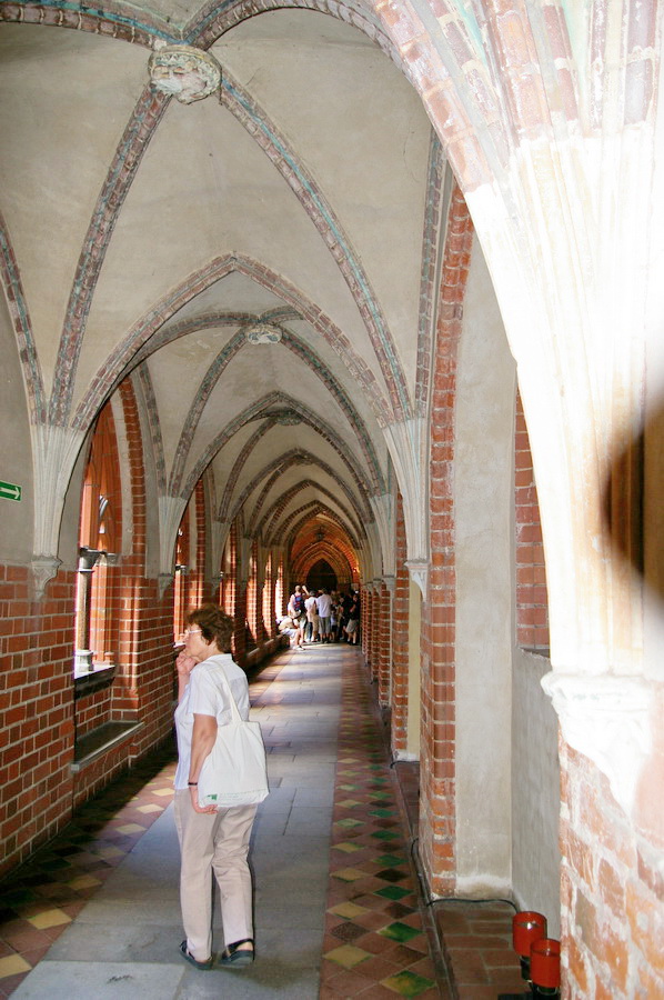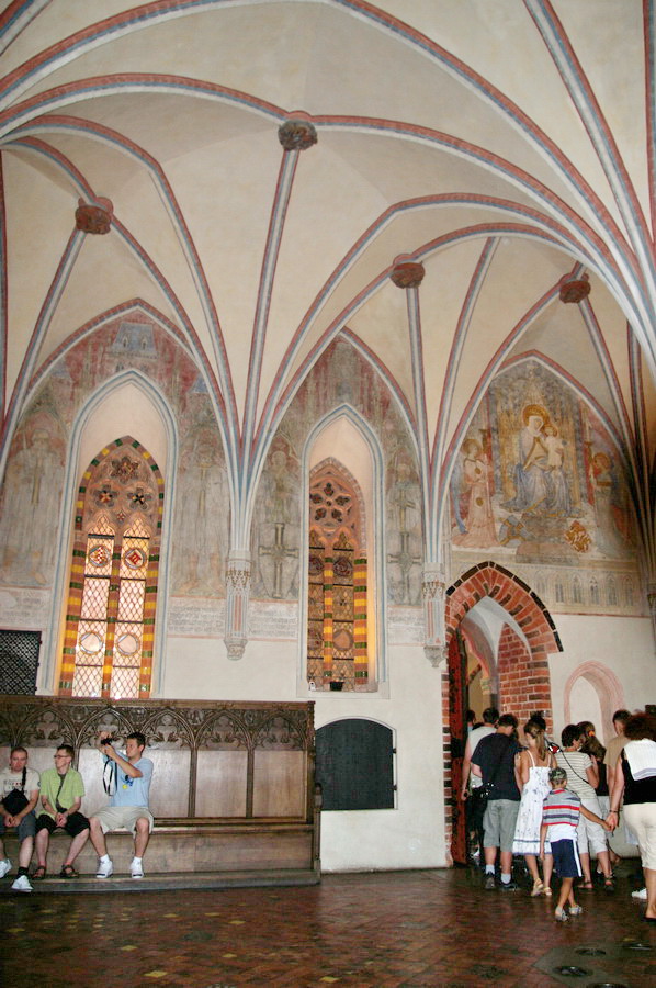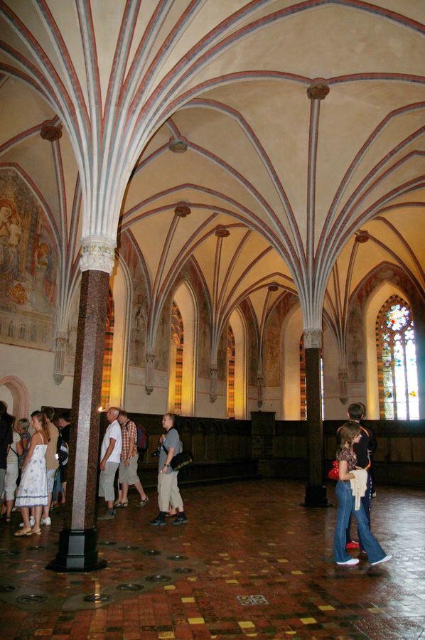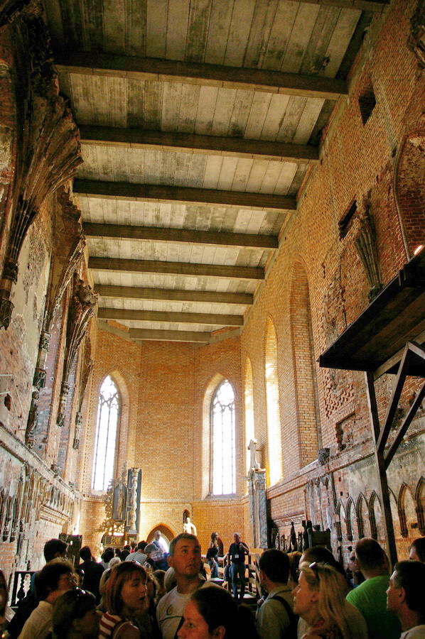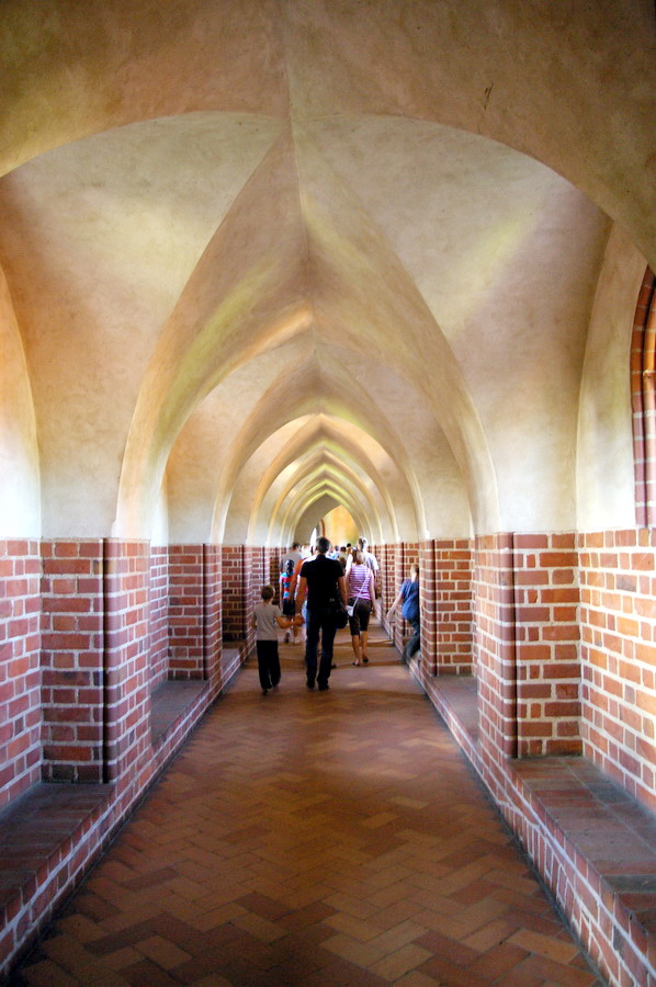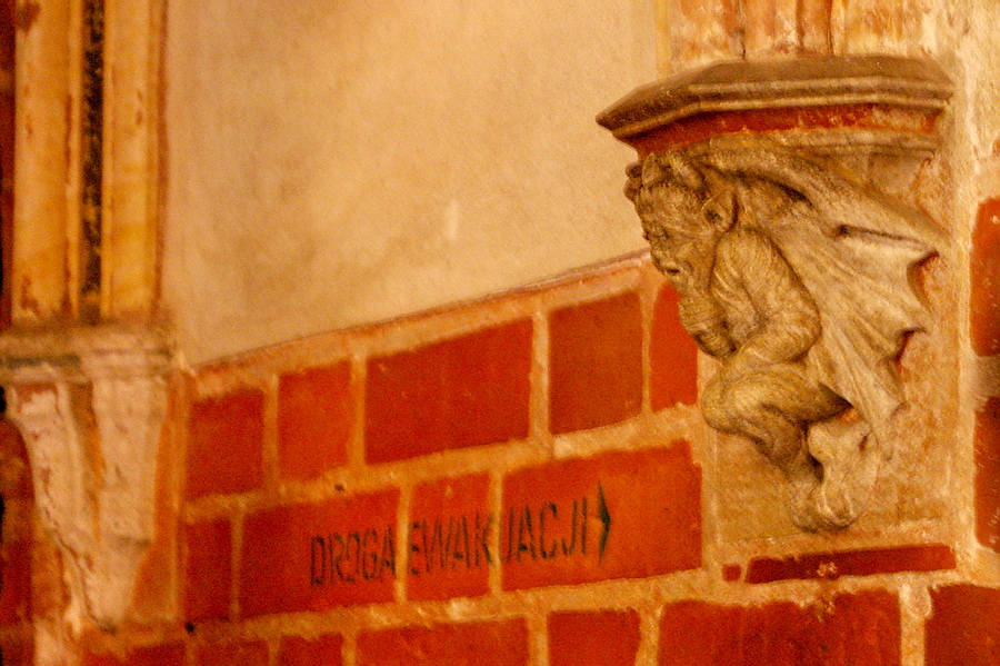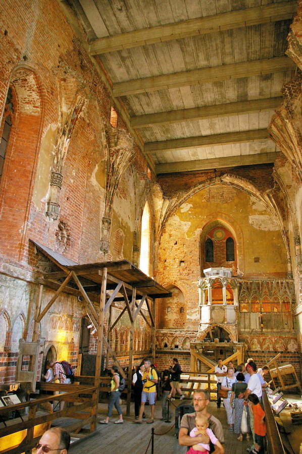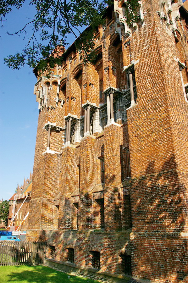 Belaukiant eksursijos tęsinio, pafotkinau Aukštutinę pilį. Tai geriausiai išsilaikiusi ir labiausiai retauruota Malborko pilies dalis, tačiau ten irgi dar yra ką daryti. Susirinkus eksursijai, mediniu tiltu nuėjome į vidų. Prieš vartus mums papasakojo, kad čia iš esmės buvo vyrų vienuolynas, į kurį moterims įeiti buvo uždrausta. Brolių-vienuolių nebūdavo daug (maks. 100-120), tačiau jie surinkdavo didžiules kariuomenes iš visos Europos žygiams prieš pagonis. Vartų bokšto viršuje yra anga, pro kurią pildavo karštą smalą arba vandenį, nors to niekad neprisireikė – pilis niekad nebuvo užimta.