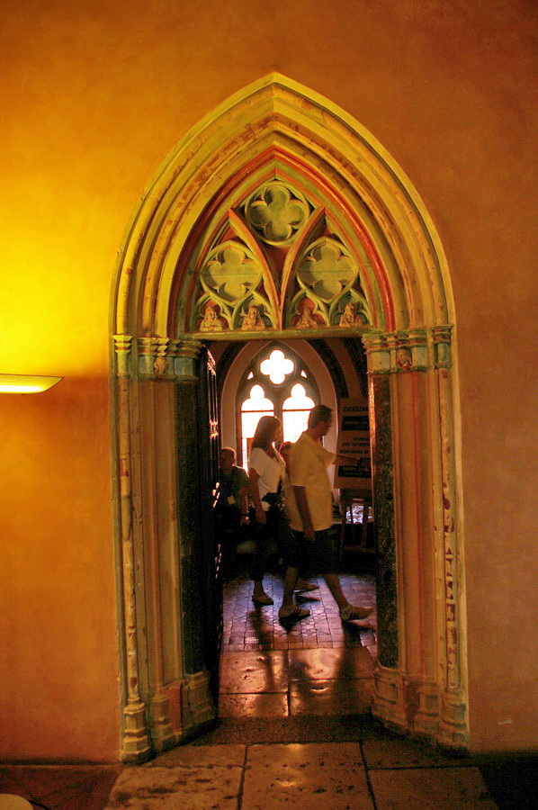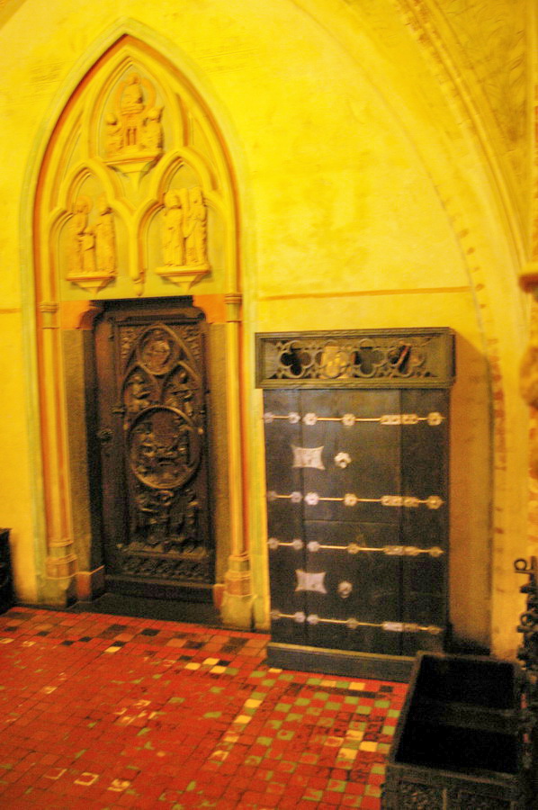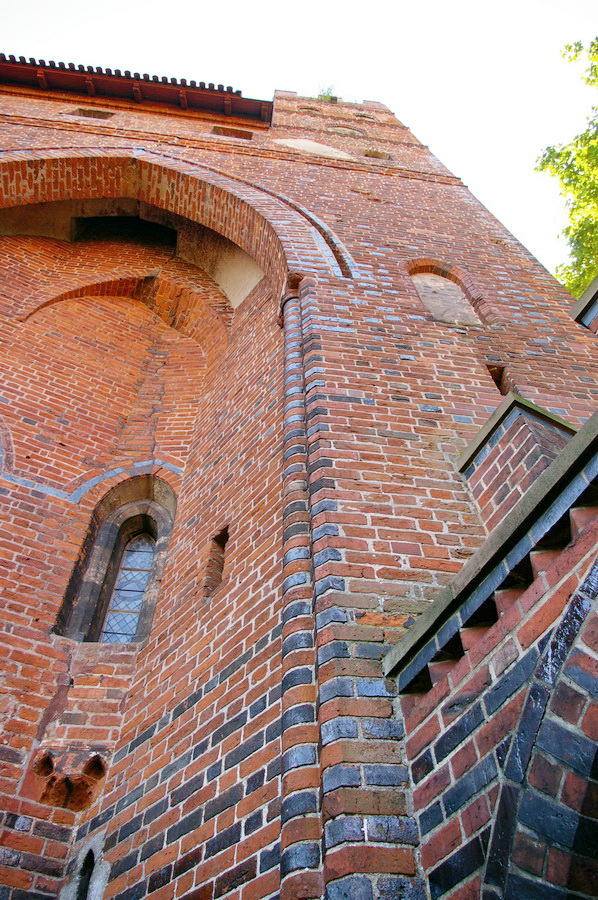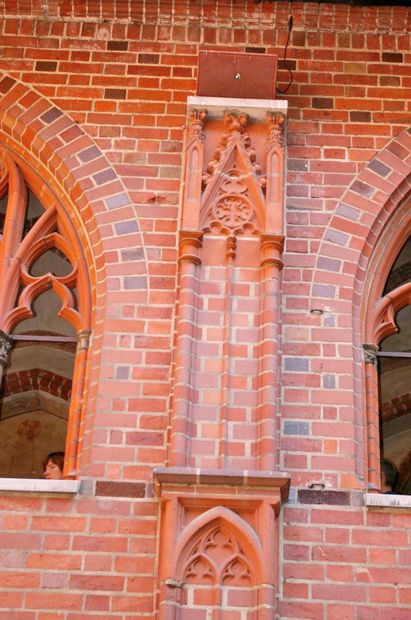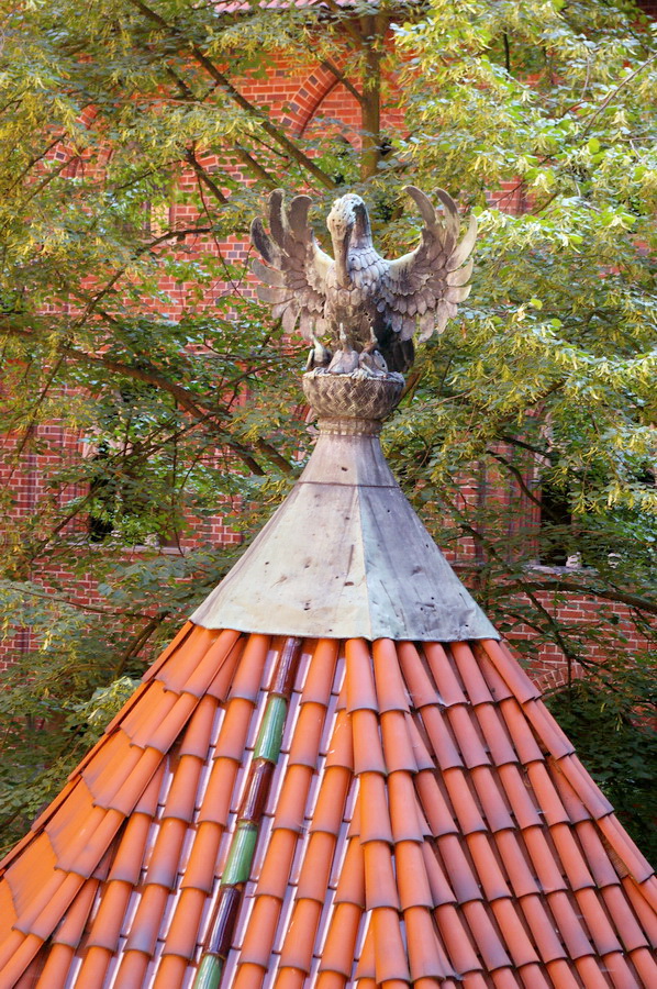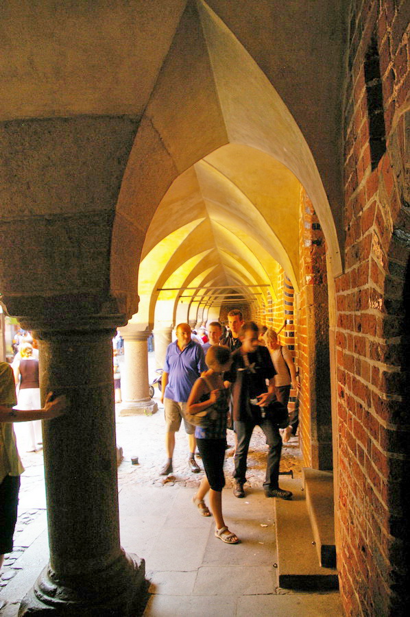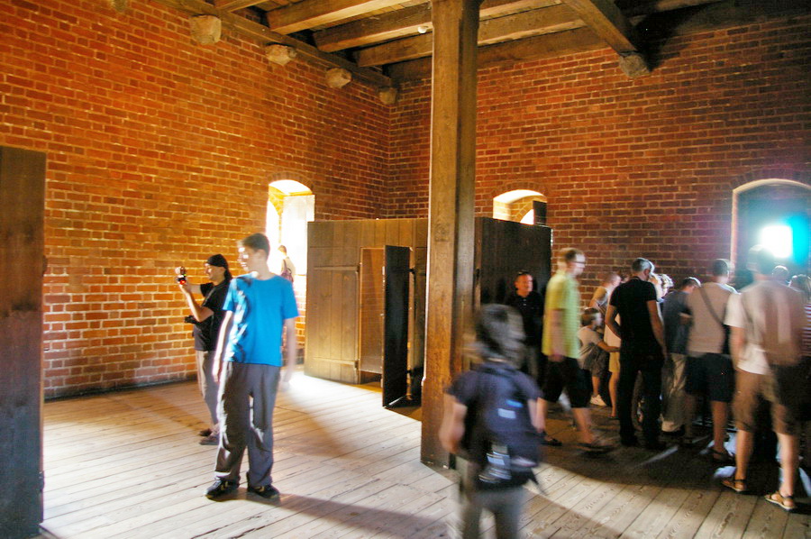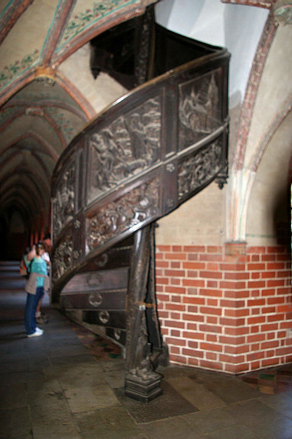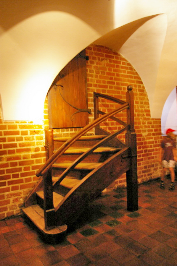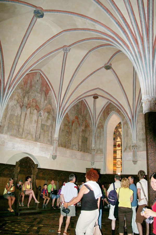 Belaukiant eksursijos tęsinio, pafotkinau Aukštutinę pilį. Tai geriausiai išsilaikiusi ir labiausiai retauruota Malborko pilies dalis, tačiau ten irgi dar yra ką daryti. Susirinkus eksursijai, mediniu tiltu nuėjome į vidų. Prieš vartus mums papasakojo, kad čia iš esmės buvo vyrų vienuolynas, į kurį moterims įeiti buvo uždrausta. Brolių-vienuolių nebūdavo daug (maks. 100-120), tačiau jie surinkdavo didžiules kariuomenes iš visos Europos žygiams prieš pagonis. Vartų bokšto viršuje yra anga, pro kurią pildavo karštą smalą arba vandenį, nors to niekad neprisireikė – pilis niekad nebuvo užimta.