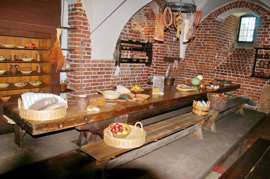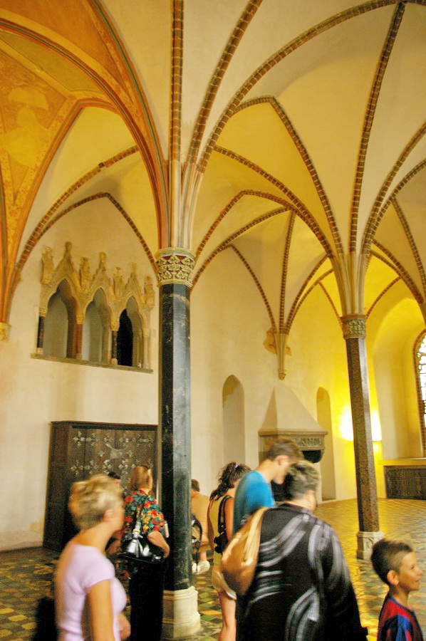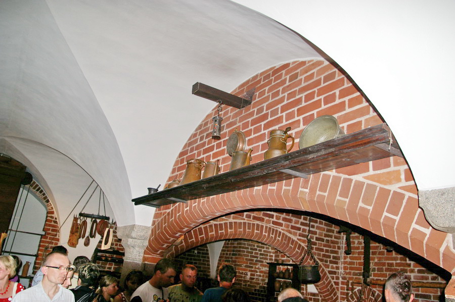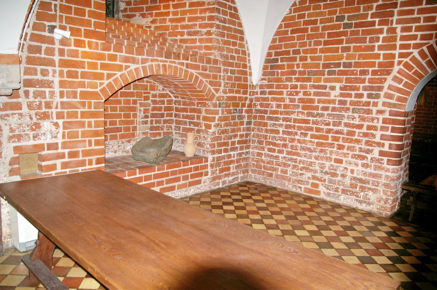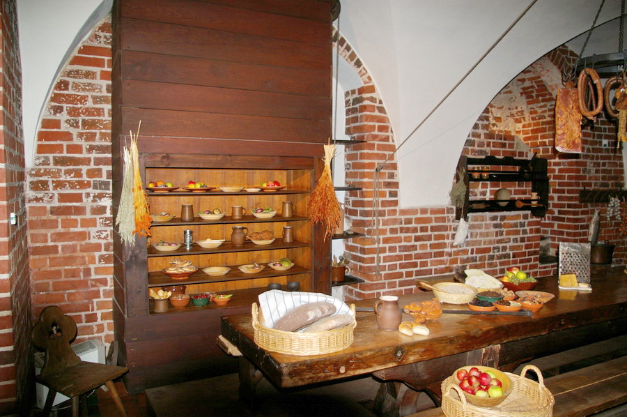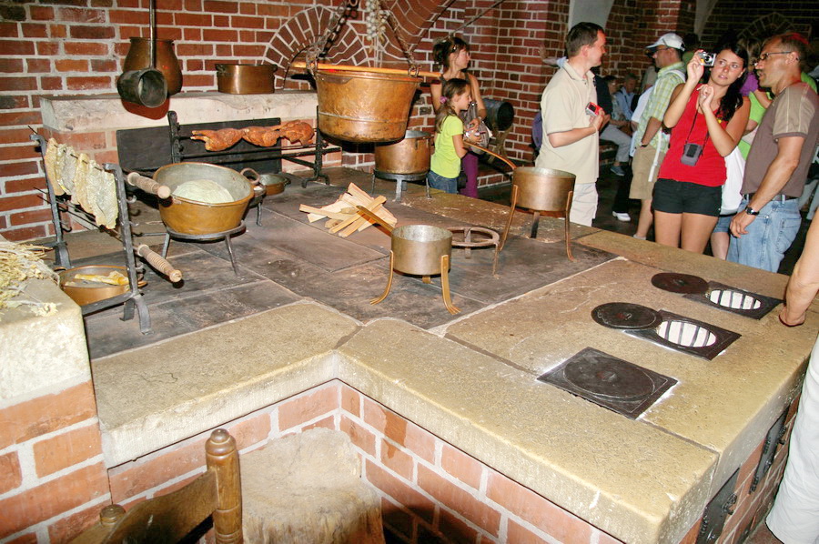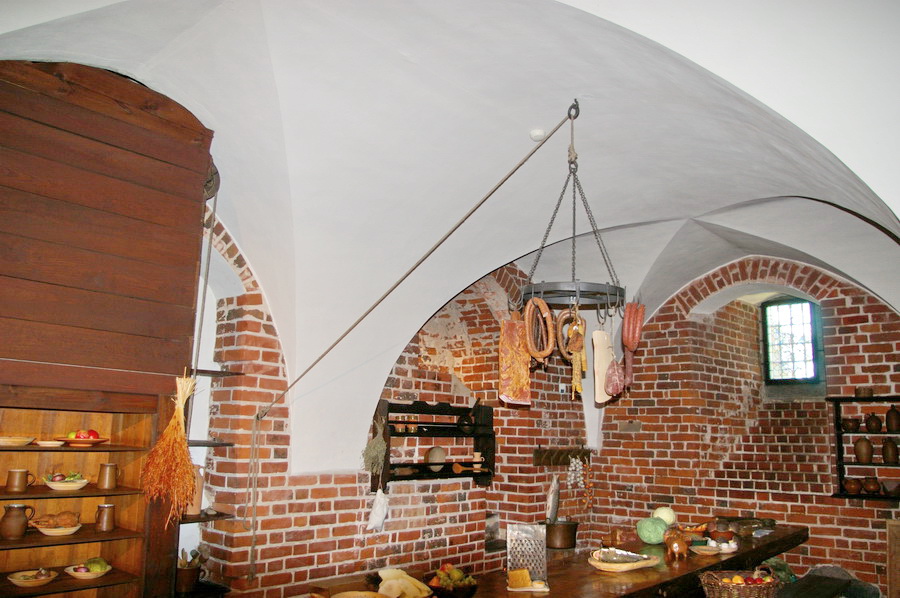 Pirma patalpa,kurią aplankėme – gerai įrengta virtuvė, šalia buvo duonos kepykla. Užlipus į antrą aukštą, pirmiausia aplankėme kapitulos posėdžių salę. Iš galerijos, einančios aplink visą pilį, gerai matosi pelikanas ant šulinio stogo viršaus. Gyvenamųjų kambarių lankymas buvo įdomus – aibė įvairių buities detalių, o ypač stebina mažytė lova. Be abejo, visada domina klausimas, kaipgi su tualetu. Pasirodo, tualetas pilyje buvo, o kelią į jį rodė velniukas su sparneliais – tipo skrisk kaip ant sparnų, nes koridorius į „ten“ ne tai kad ilgas, bet labai ilgas. Tualeto patalpoje – 8 kabinos, iš kurių „kūrybos“ produktai krisdavo į aplink pilį tekančią upę.