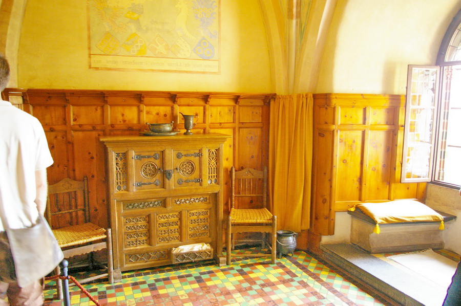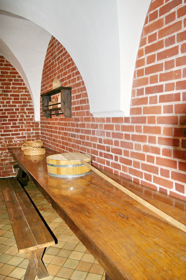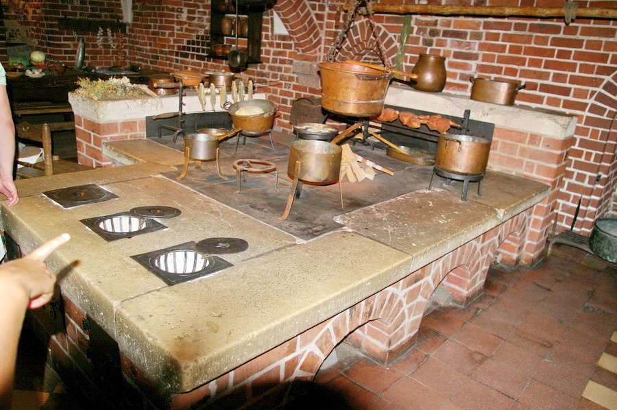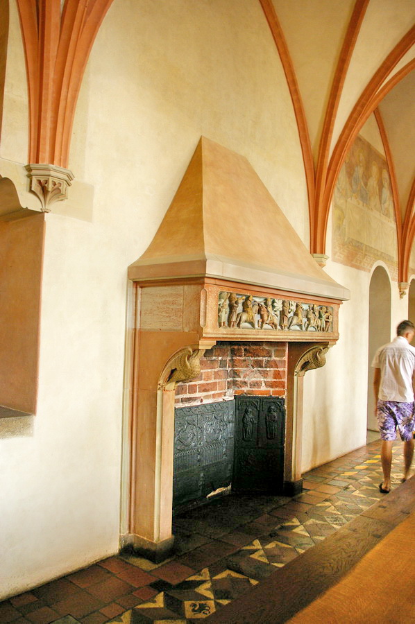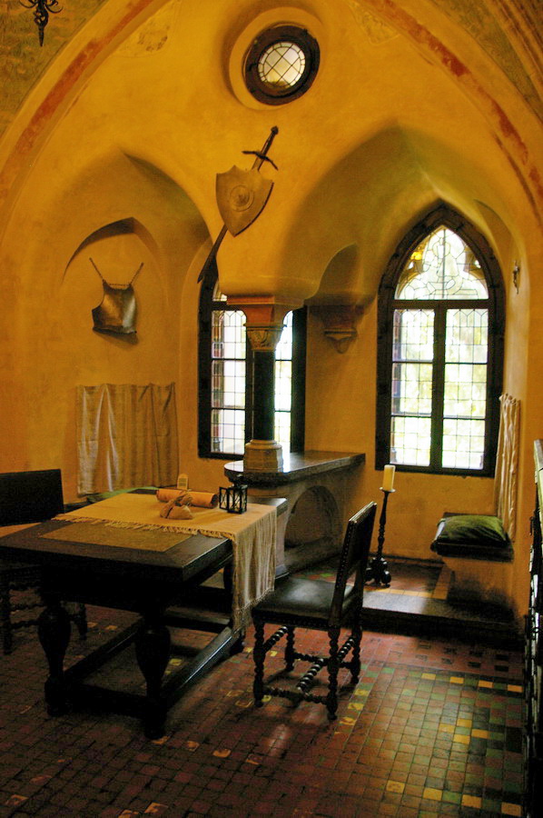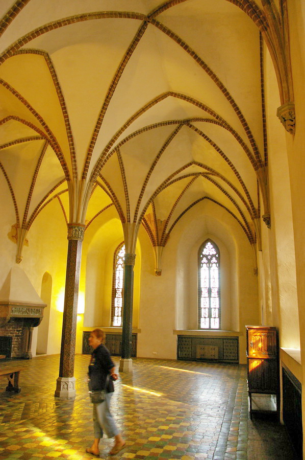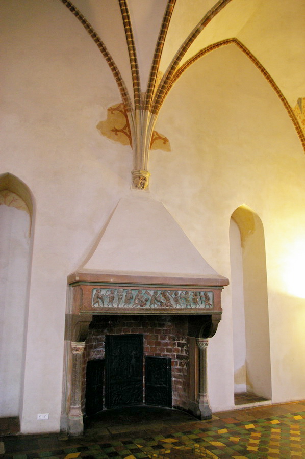 Pirma patalpa,kurią aplankėme – gerai įrengta virtuvė, šalia buvo duonos kepykla. Užlipus į antrą aukštą, pirmiausia aplankėme kapitulos posėdžių salę. Iš galerijos, einančios aplink visą pilį, gerai matosi pelikanas ant šulinio stogo viršaus. Gyvenamųjų kambarių lankymas buvo įdomus – aibė įvairių buities detalių, o ypač stebina mažytė lova. Be abejo, visada domina klausimas, kaipgi su tualetu. Pasirodo, tualetas pilyje buvo, o kelią į jį rodė velniukas su sparneliais – tipo skrisk kaip ant sparnų, nes koridorius į „ten“ ne tai kad ilgas, bet labai ilgas. Tualeto patalpoje – 8 kabinos, iš kurių „kūrybos“ produktai krisdavo į aplink pilį tekančią upę.