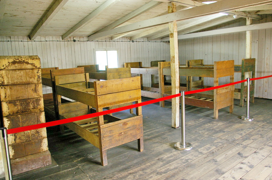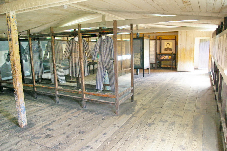 Įėjus pro vartus, be abejo, papyškinau fotopanoramą. Išlikusiuose barakuose įrengtos ekspozicijos, iš kurių slogiausią įspūdį paliko batų krūva, ant grindų sumestų antklodžių krūva (taip nakvota lagerio statymo metu), medinės lovos, stalai valgymui. Ypatingai slegiantis įspūdis – ligoninė, kurioje buvo žudomi žmonės.