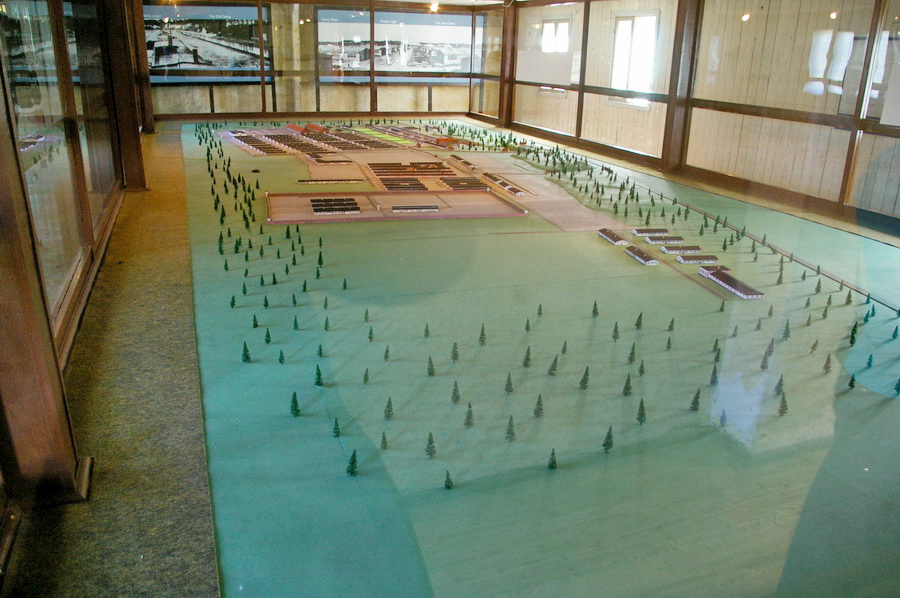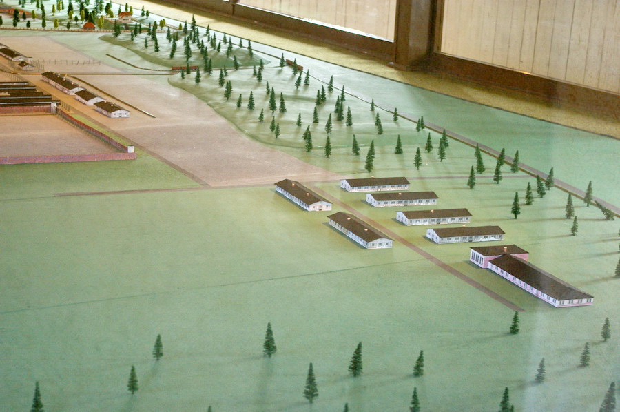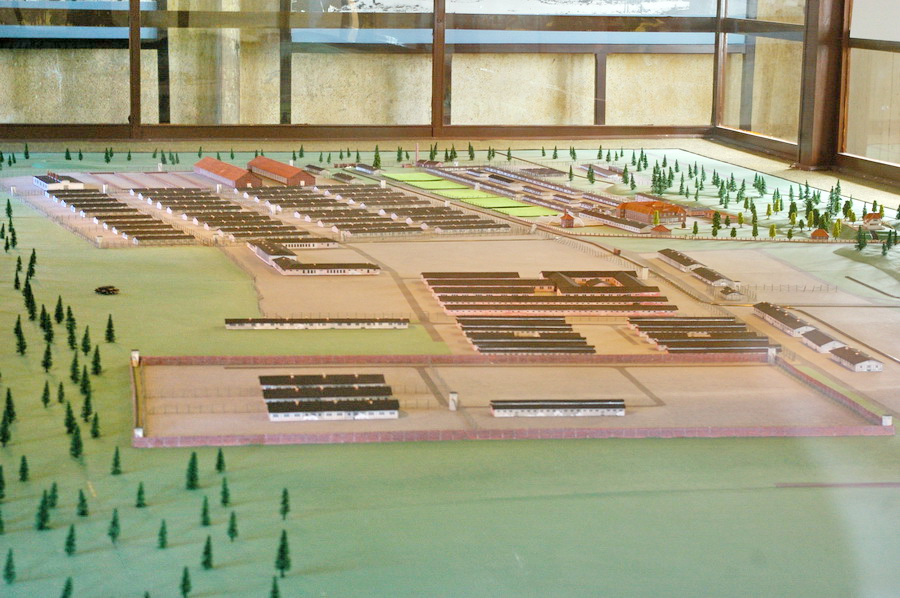 Viename iš barakų – didžiulis lagerio maketas, kuriame matyti ir komendantūra, ir lagerio komendanto vila. Labai įdomios schemos, rodančios lagerio kaitą: 1939.IX, 1940.VI, 1942.II, 1943.VI, 1944.XII.