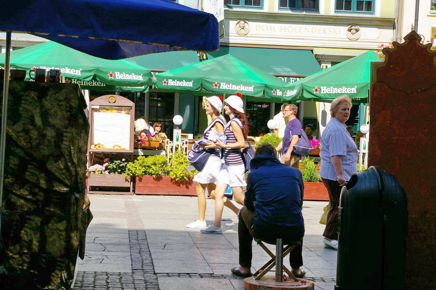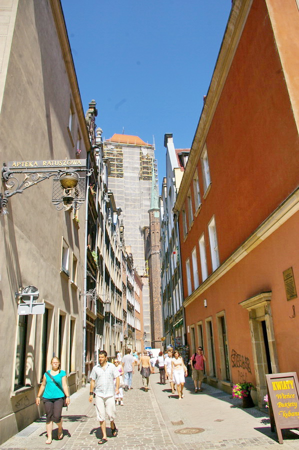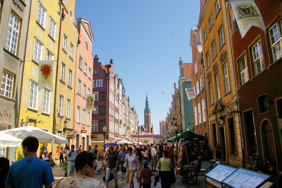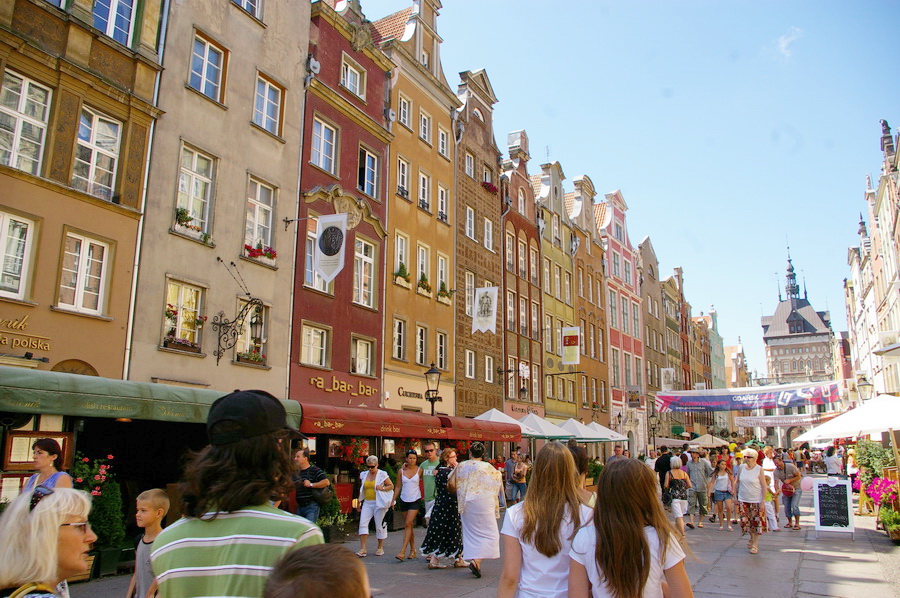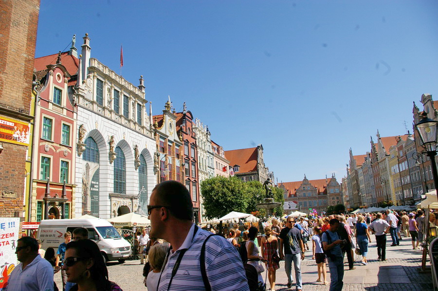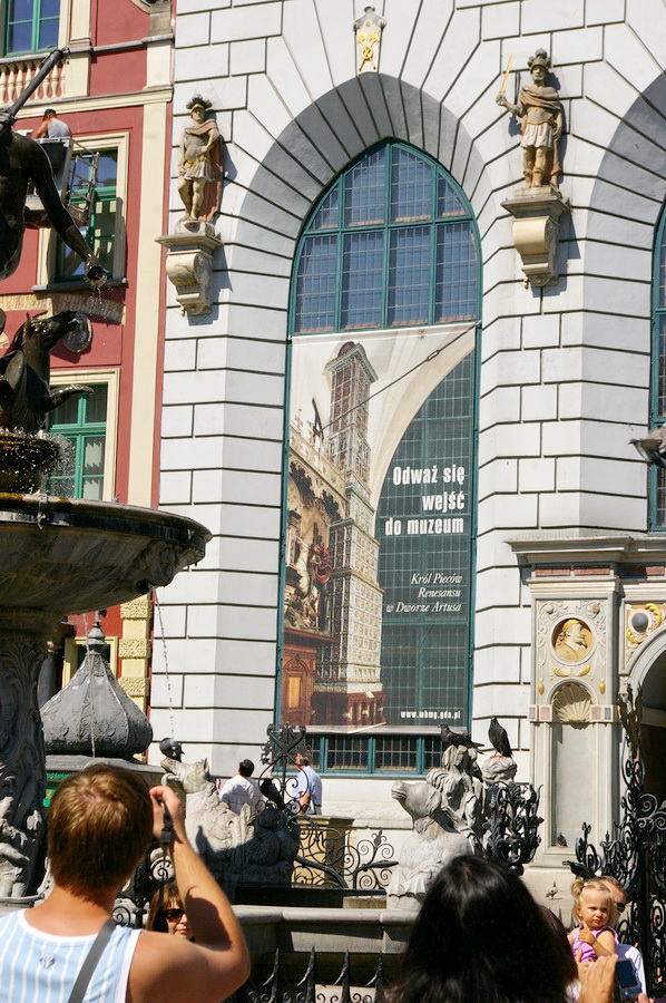 Atvažiavus į Gdanską, susiradome parkingą netoli senamiesčio, o paskui nuėjome į pagrindinę senamiesčio gatvę. Na, čia pyškinau kairėn ir dešinėn, nes tikrai yra ką fotografuoti. Nuotraukos sudėtos galerijon, be giliamintiškuų komentarų, nes tai tikrai graži gatvė ir kažkaip tingėjosi gilintis, kas čia per įžymybės. Patiko vienos apsukrios lenkaitės uždarbiavimo būdas: apsirengusi senoviniais drabužiais, ji sukinėjosi prie Neptūno fonrtano ir už porą zlotų fotografavosi su norinčiais. Įdomi pasirodė ir muziejaus reklama: „Išdrįsk įeiti į muziejų“. Gražų dalyką jie turi – unikalias gatvių pavadinimų lenteles.