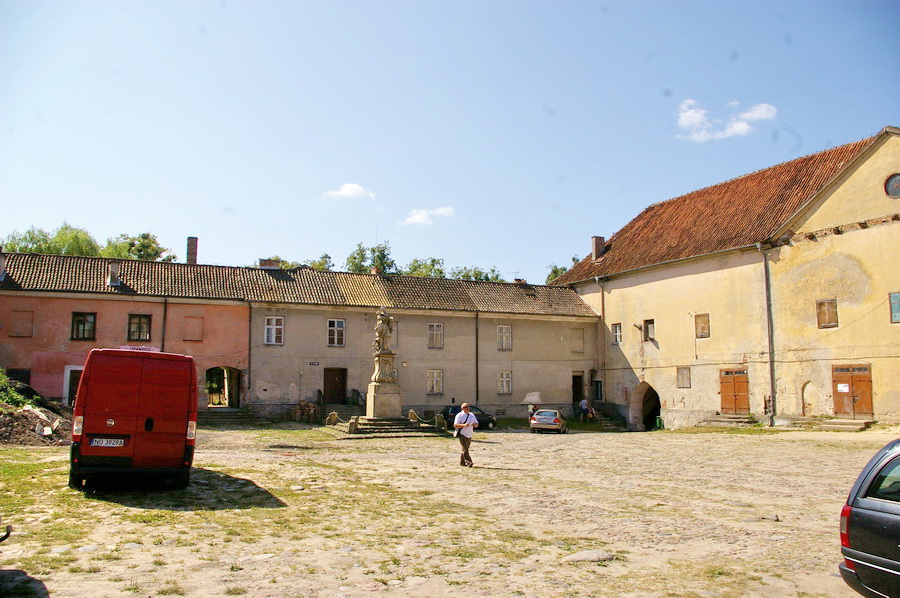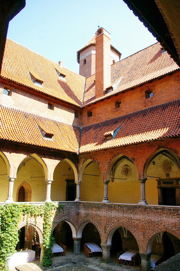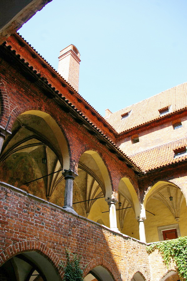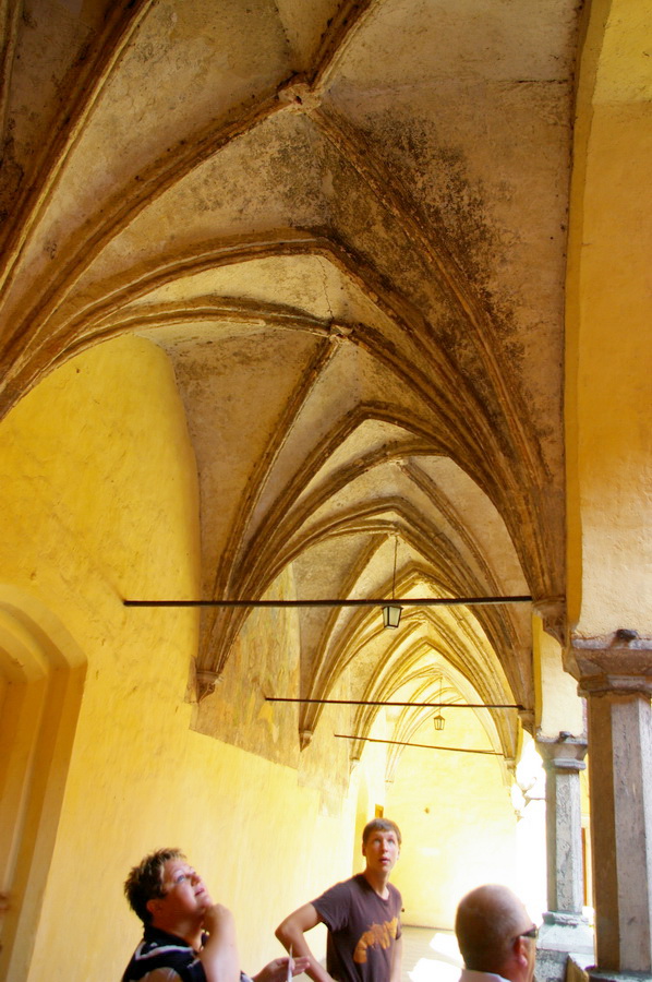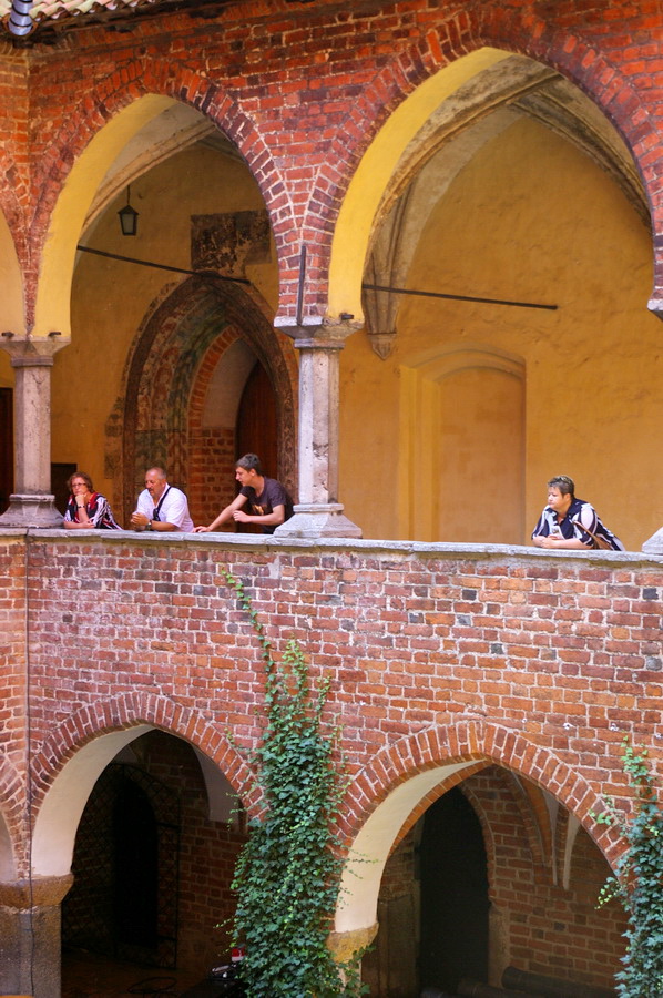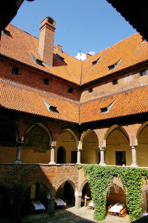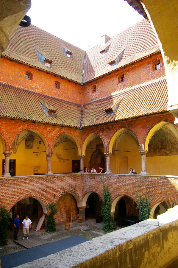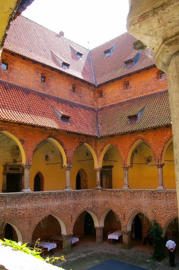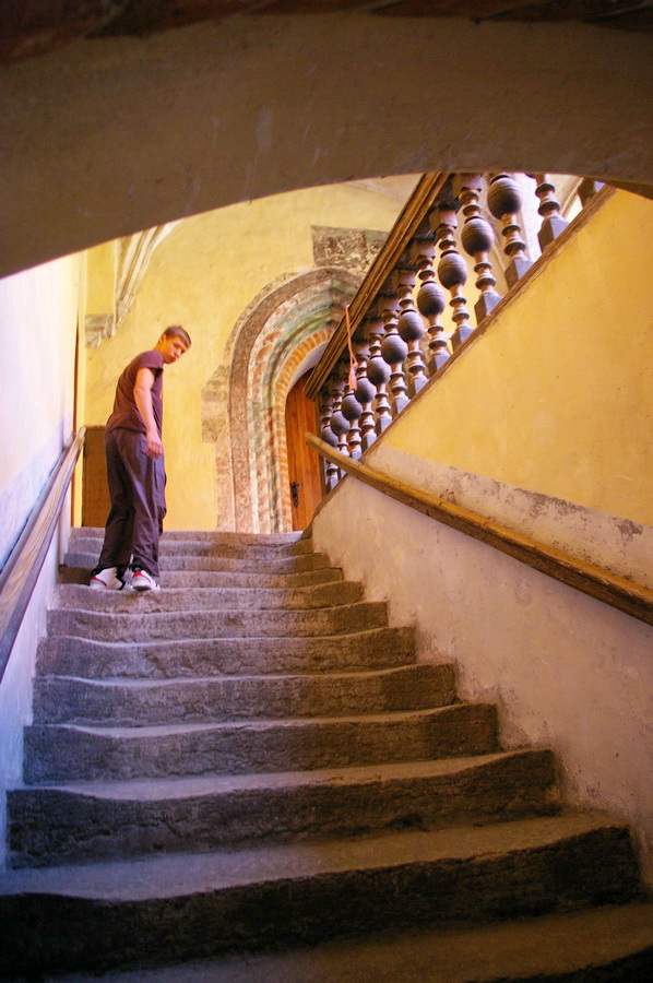 Pati pilis – keturi korpusai aplink vidinį kiemą. Tik įėjęs vidun, pradėjau intensyviai fotkinti ir viskas buvo beveik gerai. Gerai, kol neįėjome į patalpas. Tik spėjau nufotkinti vyskupo krėslą, kai pripuolė prižiūrėtoja, ir pareiškė, kad fotografuoti patalpose draudžiama. Tai va pilies patalpose nuotraukų nepadariau 🙁 , teko pasitenkinti vidinio kiemo fotkėmis. Išėjęs iš pilies, dar paforkinau panoramą ir pasukome link automobilių. Pakeliui dar padariau keletą gražesnių kadrų tipo santechniko pilis. Įspūdingai atrodo miesto vartų bokštas.