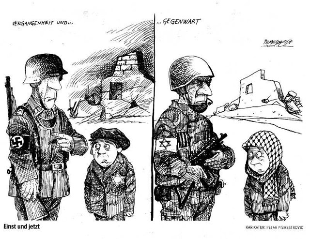 Musulmonų propaganda. Izrealis mažas, palyginus su arabų gausa. Tad nereikia paišyti arabų mažiukais. Kvailais – taip, bet nenupieši…