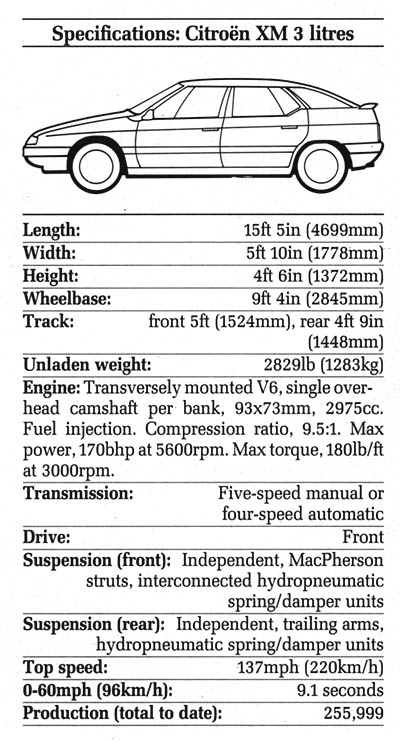 Hydractive 2 pakabos sistema pritaikoma Citroën XM. Nauja sistema automatiškai persijungia nuo vieno pakabos režimo prie kito („normal“ į „sport“). Visa XM šeima aprūpinama vieno prisilietimo vairuotojo pusės automatiniais langais, perimetrine ir volumetrine aliarmo sistemomis ir kodiniu variklio imobilizatoriumi. XM šeimoje 31 modelis.