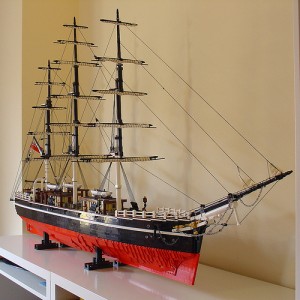 …juodų ir raudonų LEGO detalių, gali sukonstruoti beveik idealų kliperio Cutty Sark 1:50 modelį