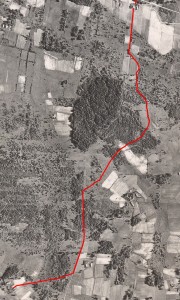 – dešinėje – 1946ųjų aerofotonuotrauka – 1964/65 dar nebuvo praėjusios melioracijos ir vienkiemiai dar nesuvaryti į gyvenvietes, tad kraštovaizdis iš esmės buvo tas pats, tik miškai labiau paaugę;