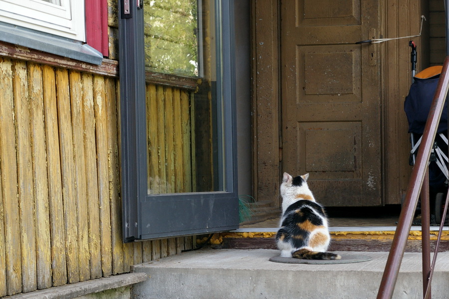 Abi durys atviros, antrosios net parištos, o katė tupi ir laukia – ko? Pakvietimo? 😀 Turbūt retai sulaukia, jei jau netupia ant betono… 😀