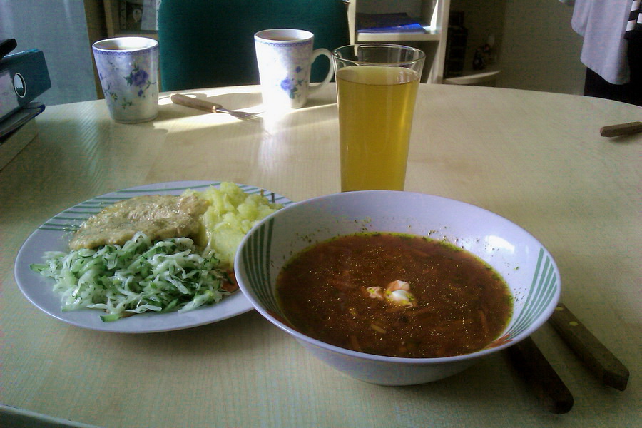 ooo, kai dirbau mokykloje, kol jos neuždarė (o tai buvo pernai), irgi lepindavausi taip. Už 4 lt tai ir persivalgyti galima. Irgi kažkur esu mobiliaku tokią šikarną trapezą įamžinęs 🙂 Čia tai matosi šiuolaikinė civilizacija aplinkui, gal kad darželis, o ne mokykla. O daug kur viskas likę kaip anais sovietiniais laikais. Su aliuminiais įrankiais, granionnais stakanais su kompotu. Visa aplinka turėtų sukelti šleikštulį, bet ne, bent man tai sukeldavo apetitą 🙂