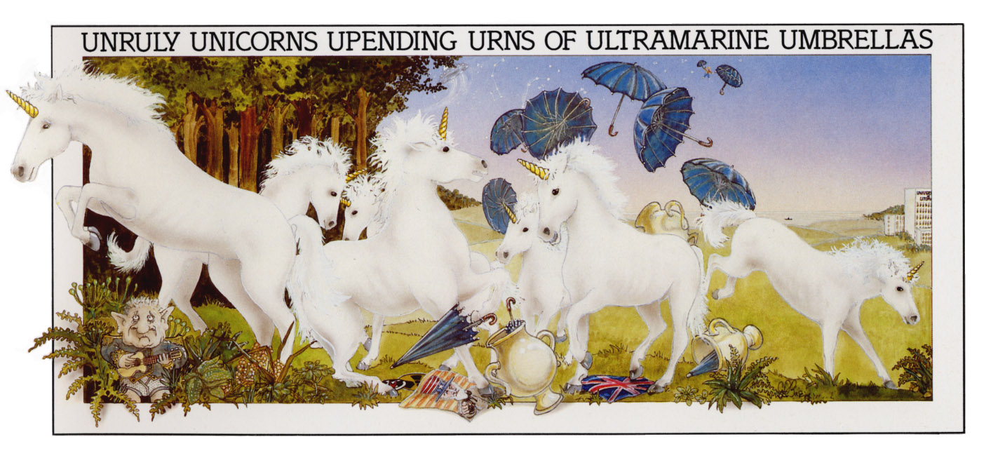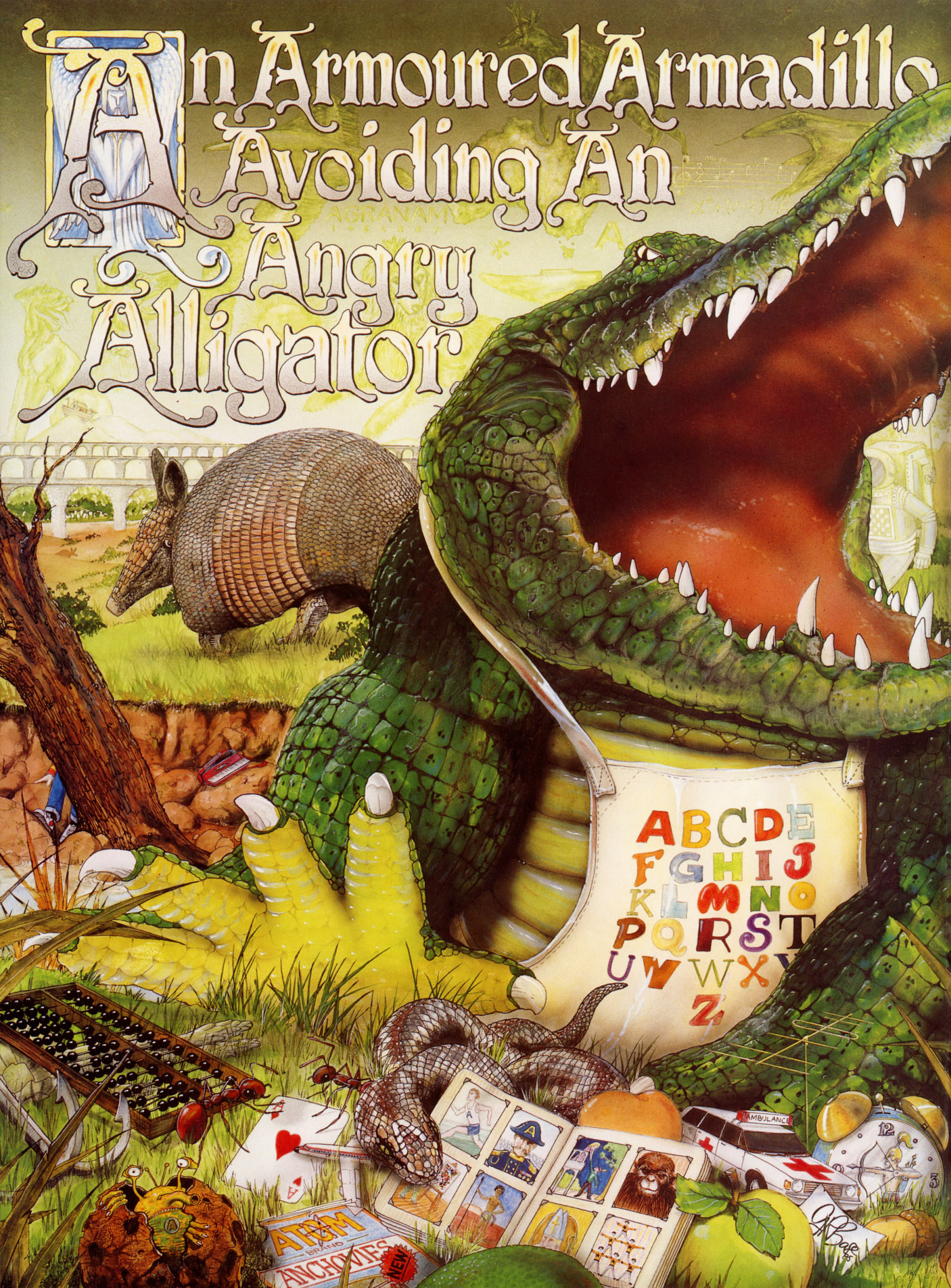 Kažkaip tiek vakar, tiek šiandien buvau užsiėmęs viskokiais svarbalais, kad tik dabar susimąsčiau, kad mėnesio galerija neatnaujinta 🙁 Puoliau žiūrėti, ką čia turiu, ale niekaip negaliu apsispręsti. Tai laikinai pasimokinkit anglų kalbos iš labai originalaus australų dailininko Graeme Base abėcėlės „Animalia“, o aš gal ją po savaitės-kitos pakeisiu kuo nuors krūtesniu.