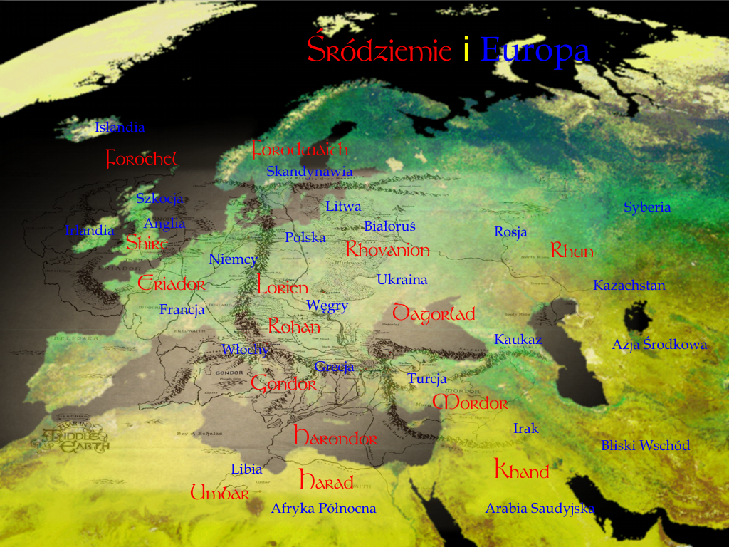 Na štai, vėl įdomus alternatyvus Viduržemės ir Europos tarpusavio išsidėstymo variantas iš lenkiško Viduržemės aprašymo.