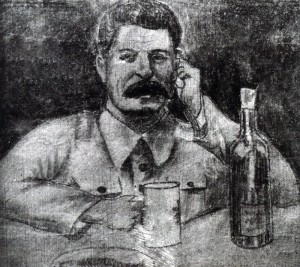 Nupiešė mokytojas ir silkę, tad butely gal vodka. Bent jau filmuose pabrėžiama, kad Stalinas gerdavo gruzinišką vyną, – «Хванчкару», «Киндзмараули» .