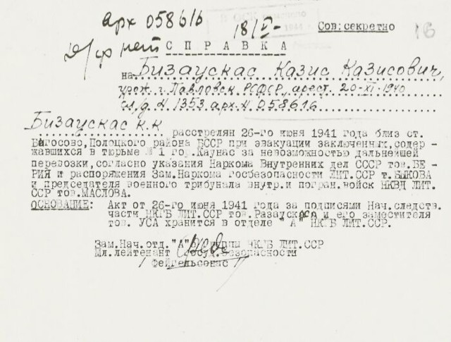 Kolega sulerin papublikavo labai įdomų dokumentą apie Kazio Bizausko likimą: