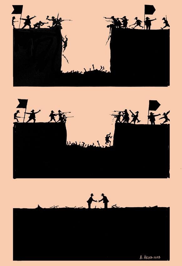 Karas – tai kai žmonės, kurie nepažįsta vienas kito, žudo vienas kitą pelnui r garbei žmonių, kurie pažįsta vienas kitą ir nežudo vienas kito