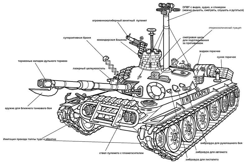 В 2014-м году на вооружение сухопутных войск России поступит новый основной боевой танк Т-98 „Армата“. Благодаря широкому применению нанотехнологий в сложенном состоянии он легко умещается в косметичке водителя и может быть скрытно перенесен на вражескую территорию даже через таможенные посты. Наряду с малозаметностью танк обладает повышенной огневой мощью, так как при заряжании его пушки каждый снаряд автоматически освящается введенным в состав экипажа быстродействующим роботом-батюшкой. Установленные по бокам башни дизельные кадила надежно окуривают танк от комаров и ракет противника, а также идеологически дезинфицируют завоеванную территорию.