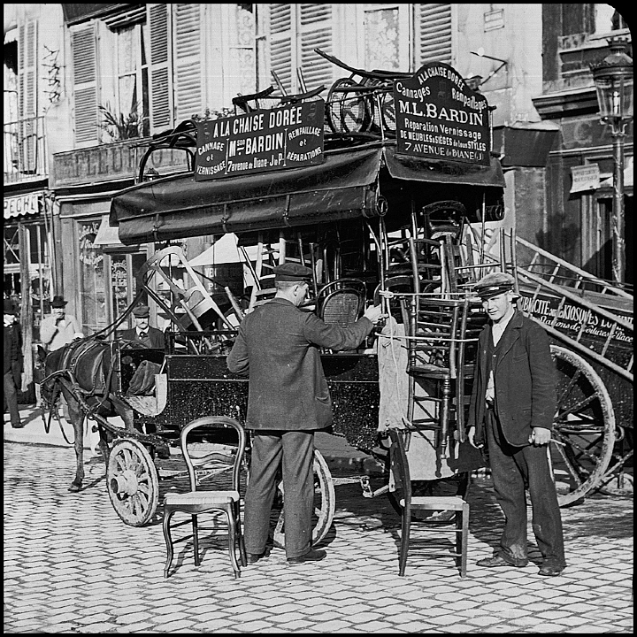 Labai įdomus francūzakalbis puslapis su 1900ųjų Paryžiaus fotkėmis, kur parodytos kai kurios tuometinės profesijos. Pvz., baldų remontininkas: