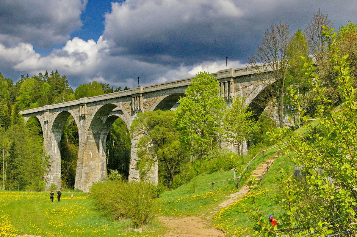 Na ten gi upeliokas apačioje teka.Tai jau ne kažkokie viadukai, o garbingi exgeležinkelio tiltai 🙂