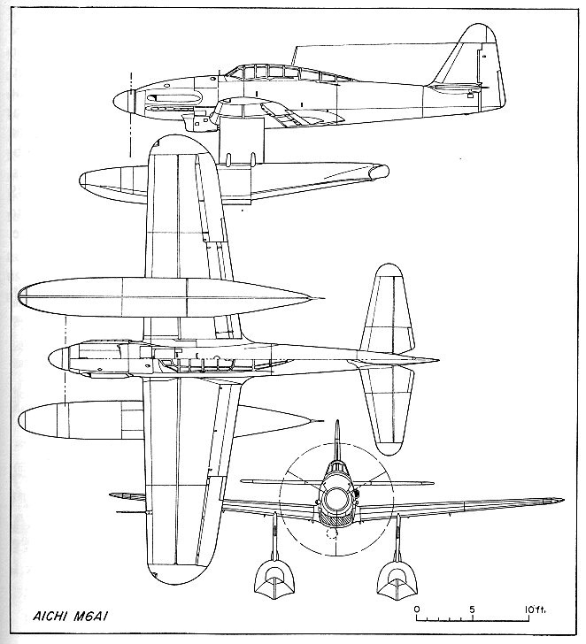 Aichi M6A Seiran – iš povandeninio laivo paleidžiamas hidrolėktuvas – pikiruojantis bombonešis [Japonija, 1943]