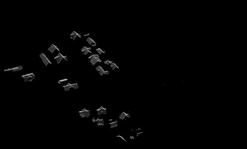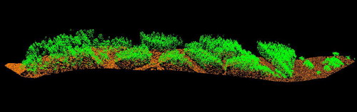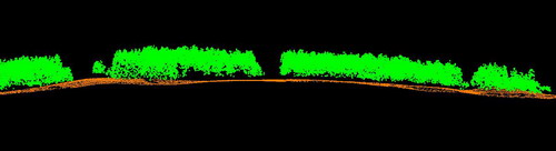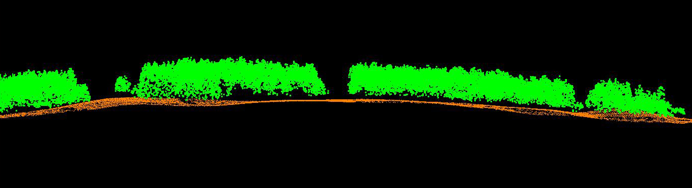 …tai nieko baisaus – protinga programinė įranga jus interpretuos tiesiog kaip triukšmą (analogiškai paukščiui, pakliuvusiam po analogišku lazerio spinduliu) ir eliminuos iš LIDAR technologijomis sudaromo Lietuvos paviršiaus modelio. Na, nebent galite būti pripažintas krūmu ir įtrauktas į augmenijos sluoksnį 😉 Nes tik tie taškai, kurie bus pripažinti tinkamais, suformuos 3D taškų duomenų bazę, kurią galėsime pamatyti tokiu pavidalu: