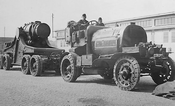 Ir čia scenoje pasirodo Dr.Ferdinand Porsche, kuris buvo Austrijos bendrovės „Daimler-Motoren-Gesellschaft” Wiener Neustat mieste techniniu direktoriumi. Ši bendrovė gavo užduotį pagaminti transporto priemones Čekijos firmos „Skoda“ sukurtiems sunkiesiems apgulties 24cm, 36cm ir 42cm pabūklams. 1910-1913 metais buvo pagaminti 10 „Elektro-Train Daimler-Landwer” auto-traukinių, kurie vėliau karo metu puikiai tarnavo kaip važinėjančios dirbtuvės. Po eksperimentų buvo panaudotas 6 cilindrų 20.32 litro apimties 155AG variklis, kuris suko elektrogeneratorių (250V pastovi srovė, 93kW), tačiau atskirų elektromotorų pagalba varomi buvo ne tik paties vilkiko užpakaliniai ratai, bet ir visų 4 priekabų (kuriose buvo sukrautas į 4 dalis išardytas pabūklas) užpakaliniai ratai. Naudinga krova – 25-35t, maksimalus greitis 26km/val. Įdomu tai, kad auto-traukinį „Daimler-Landwer-Zug” per 4 valandas buvo galima paruošti važiavimui geležinkelio bėgiais, tada jis galėjo tempti dukart daugiau priekabų dvigubai didesniu greičiu.