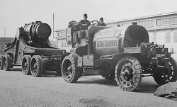 Šiaip ir pats pirmasis (garinis) automobilis, sukurtas prancūzo Cugnot’o 1770 metais, buvo užsakytas Prancūzijos kariškių ir skirtas tempti patrankas. Praktiškai karinė technika pirmąkart buvo gabenta garinių vilkikų Krymo karo metu 1853-56 metais, o Prancūzijos-Prūsijos karo 1870-71 metais metu vokiečiai iš dviejų garinių plūgų pagamino autokelių lokomotyvus. Šitie sėkmingi bandymai diegti mechanines transporto priemones kariuomenėje įvairiose valstybėse buvo tęsiami iki pat Pirmojo pasaulinio karo pradžios, ir laipsniškai buvo prieita išvados, kad reikalingi specializuoti, o ne universalūs vilkikai. Toliausiai šioje srityje pažengė Austro-Vengrijos kariuomenė. Jau 1904 metais Vengrijos Gyor mieste firma „Raba“ sukūrė automobilinį vilkiką (60AG variklis, visi 4 varomi-valdomi ratai), kuris galėjo paskui save tempti ištisą traukinį iš 5 priekabų. Tolimesni bandymai parodė, kad efektyviausias vistik yra benzo-elektrinis varymas, kai benzininis variklis suka elektrogenetorių, kurio pagaminta elektra atskirų elektros motorų pagalba suka priekinius (arba visus 4) ratus. Pati idėja dėl tokių auto-traukinių iš vilkiko su keliomis priekabomis irgi pasiteisino.